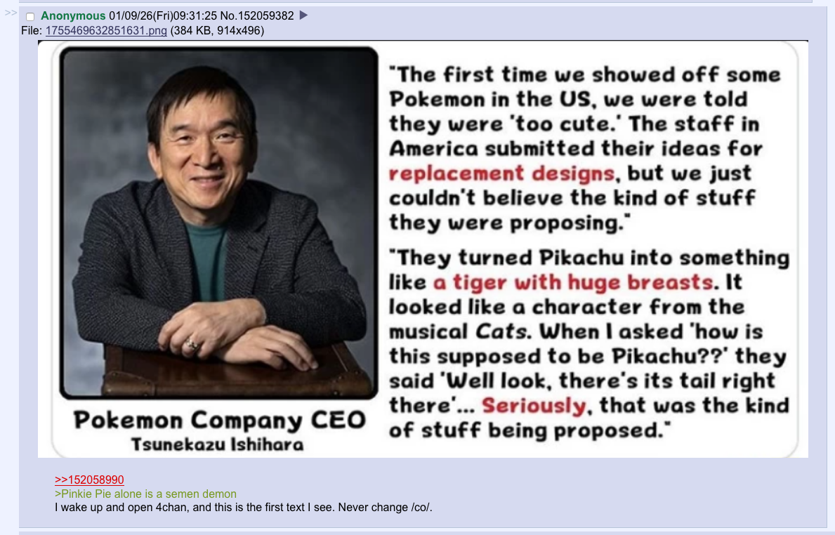 Random spam on a board over on 4chan prime, caught my eye because its been awhile since I've seen shitposters use this topic for it