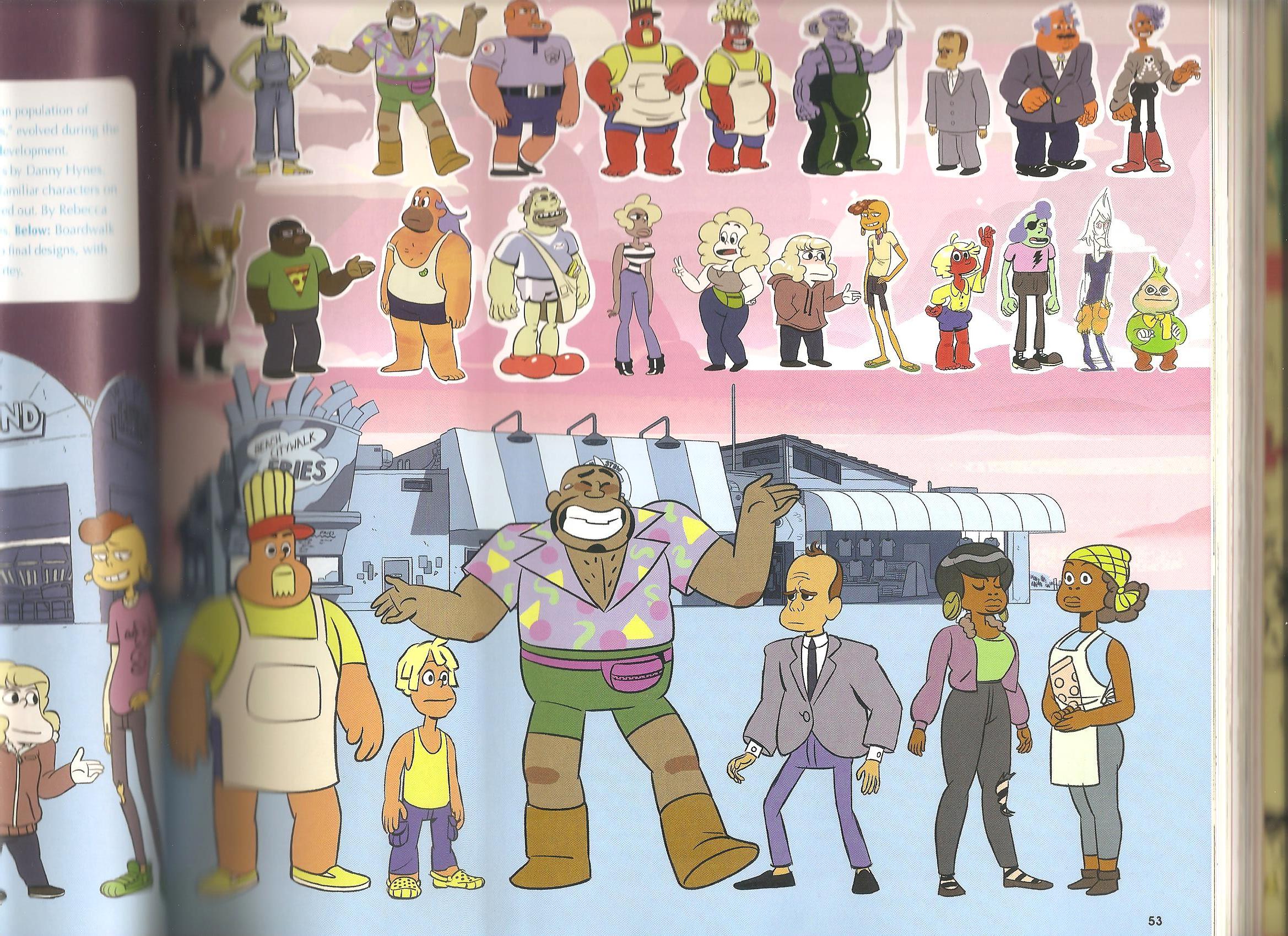 http://troffie.tumblr.com/post/156782558363/here-are-some-drawings-from-the-zoo-ages-ago >Ages ago, Rebecca pitched The Zoo to Lamar and I as this absolute utopian, hippie society full of beautiful and healthy people with no concept of pain or sadness. So we went to town drawing as many different kinds of hot people as possible! 70s sci-fi, hippie communes, The Time Machine (1960), The Footlight Parade (1933), and the Centaurette sequence from Fantasia were all influences for this episode