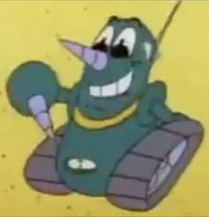 Grounder slammed his drill-hand on the button. Towards the front of the ship, a large cannon emerged, charged, and fired. Needless to say, activating an electric cannon underwater was not a very good idea. Though the clams were repulsed, the static waves spread outward throughout the water. Scratch and Grounder, being stationed directly at ground zero, received the brunt of the blast. When they next surfaced, both they and their vehicle were covered in soot. ---------- "Ye better hold onto somethin!" the panicked crab cried to his conman companion. "This clams is awful feisty! I got a plan though!" He swung a fishing line over his head, carefully considering the trajectory and force needed. With a mighty heft he tossed the hook, landing it right on the rearmost point of plankton's craft.