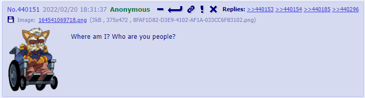 There's also at least one other Tails schizo on /co/ (if not the same guy) who is autistically upset over the movies and Origins not focusing on Tails' village; it's to the point he's convinced himself that all of the Sonic characters have Mobian parents who are just conveniently offscreen for whatever reason and that Tails wasn't actually abused by his village but is instead living with his two parents. Oh, and he also gets mad about calling Sonic and Tails brothers too.