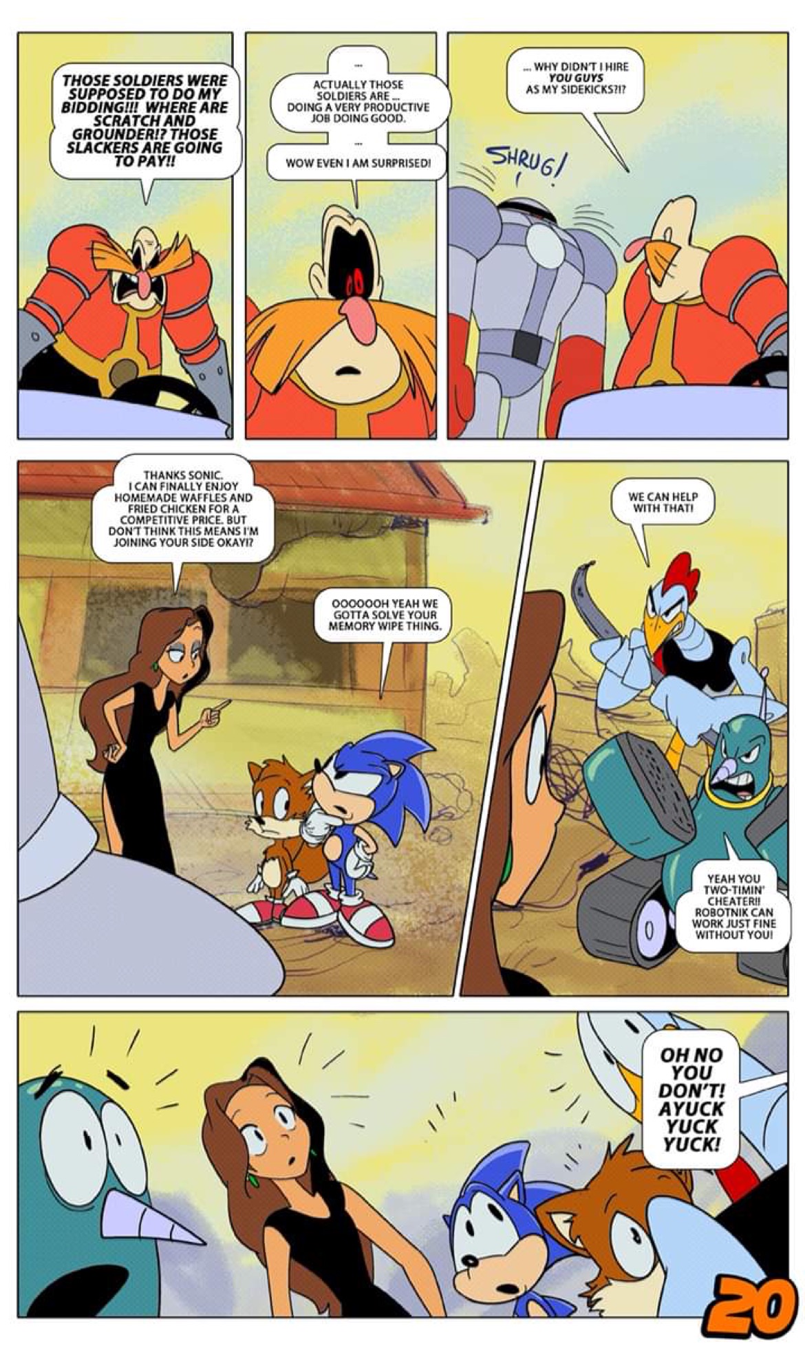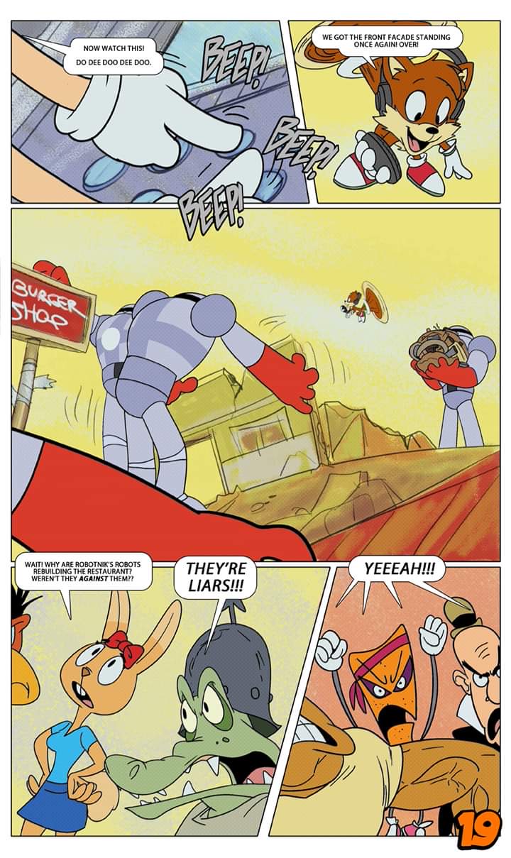 >>445531 Adventures of Sonic the Hedgehog Issue 6 Page 19-20 https://adventuresofsonic.thecomicseries.com These aren't badniks! They're acting like... goodniks!
