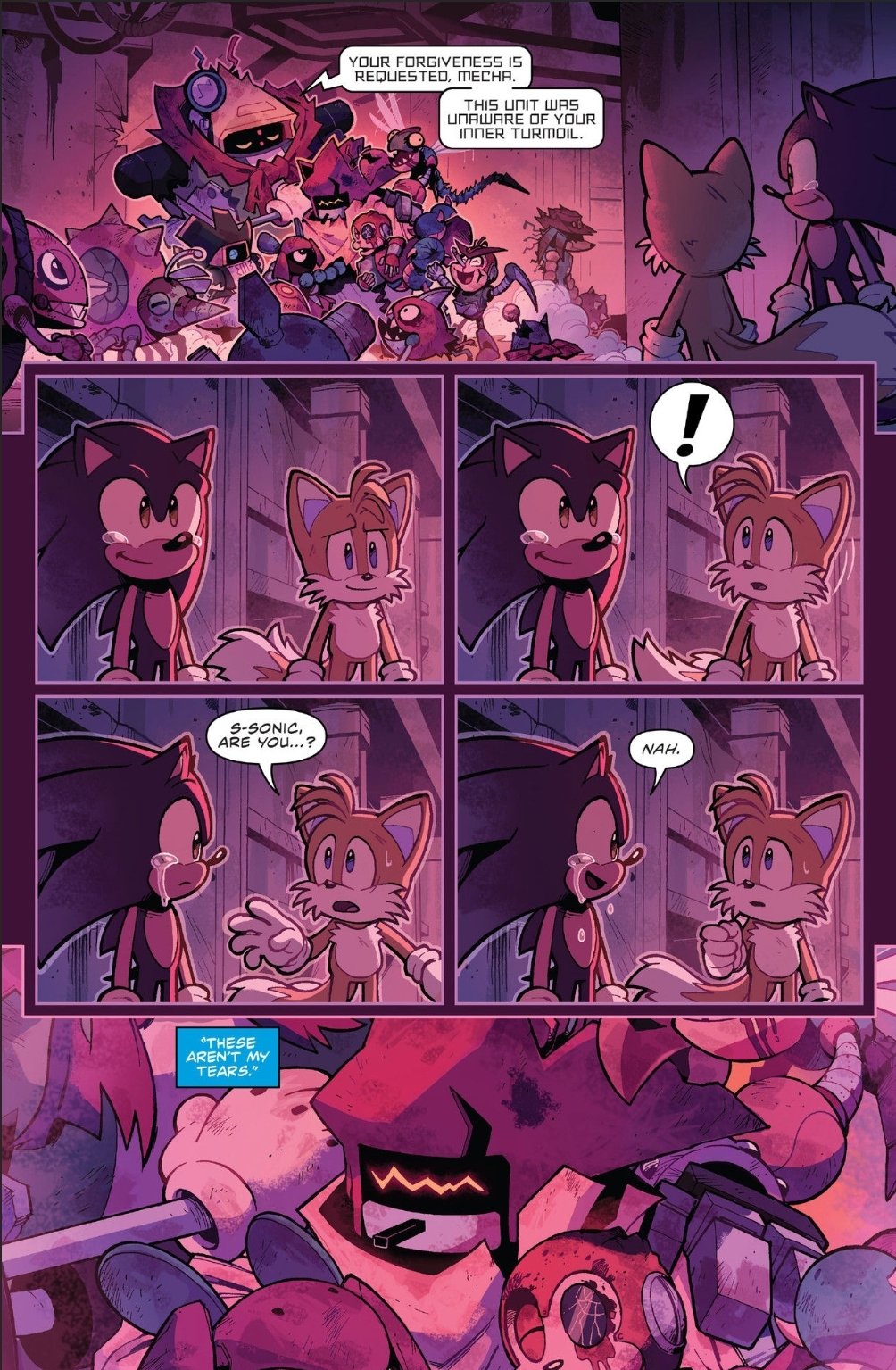 What’s that? You want another edgy fancomic? Okay! Here’s one where Sonic goes super and murder crazy! Sounds like a specific kind of Super Sonic! And what about Tails? He’s still alive at least. This is Damaged!