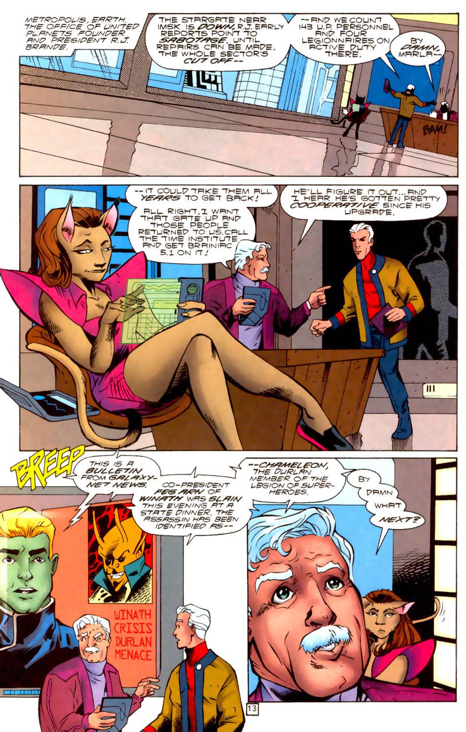 Well hello! Skimming random post-crises issues of Legion Of Super Heroes and found a thing. Her name is Weeden and she's RJ Brande personal secretary, appearing in several issues.