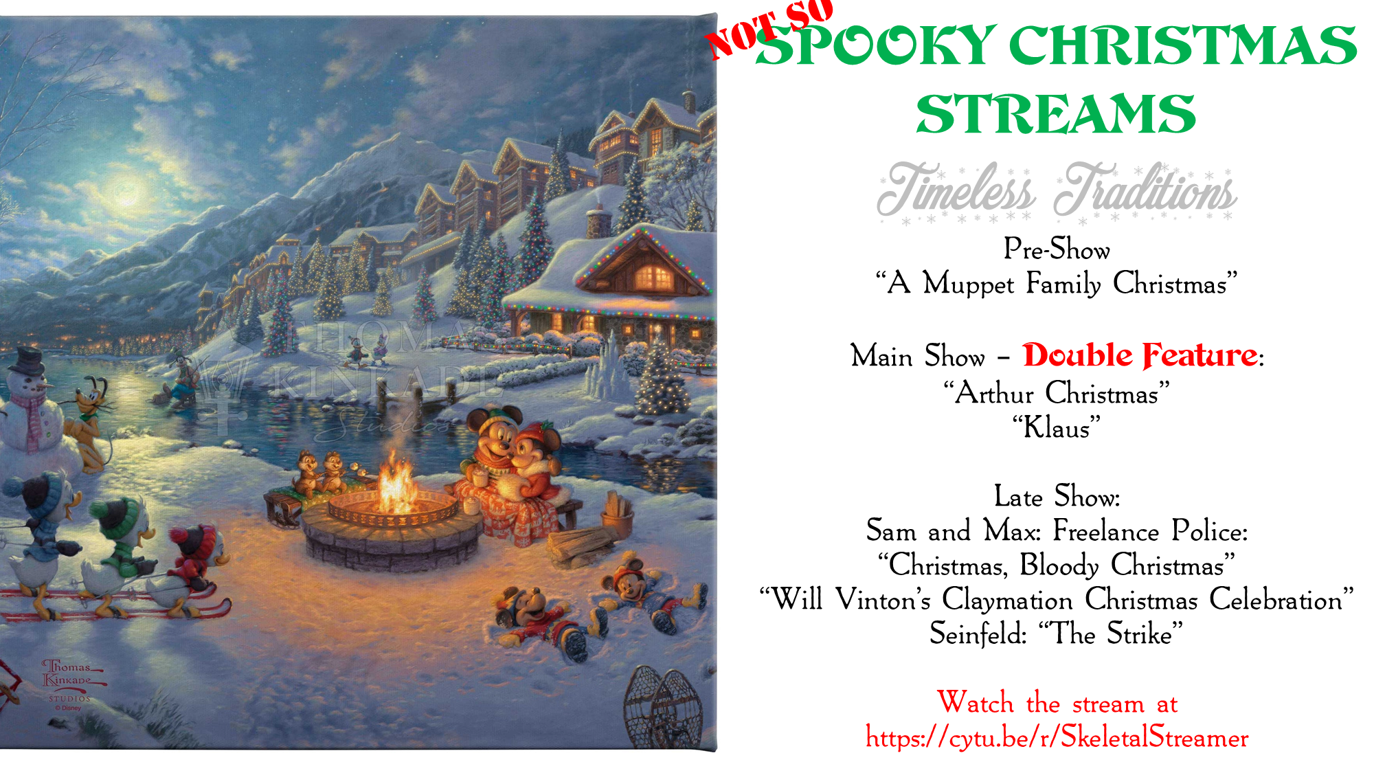 TONIGHT, ON THE FINAL CHRISTMAS STREAM It’s Christmas Day! And now that most of us are finished celebrating with family, we have one last treat for you all. First, it’s another version of the tale of Ebeneezer Scrooge and Bob Cratchit, performed by Scrooge McDuck and Mickey Mouse. Our main show is a two-part motion picture epic adapted from the incredible Discworld of Terry Pratchett’s works. The HOGFATHER, a figure akin to our own Santa Claus, has gone missing, and Death himself must take up the mantle in order to protect the world, while his granddaughter, Susan Sto Helit, investigates the sinister forces behind vanishing. To conclude our time together is a recent, but deeply cherished favorite of mine, a tale from Jim Henson and the Muppet performers about the living toys that secretly watch as Christmas Eve brings forth new toys and challenges. Merry Christmas to all, and I hope you enjoy!