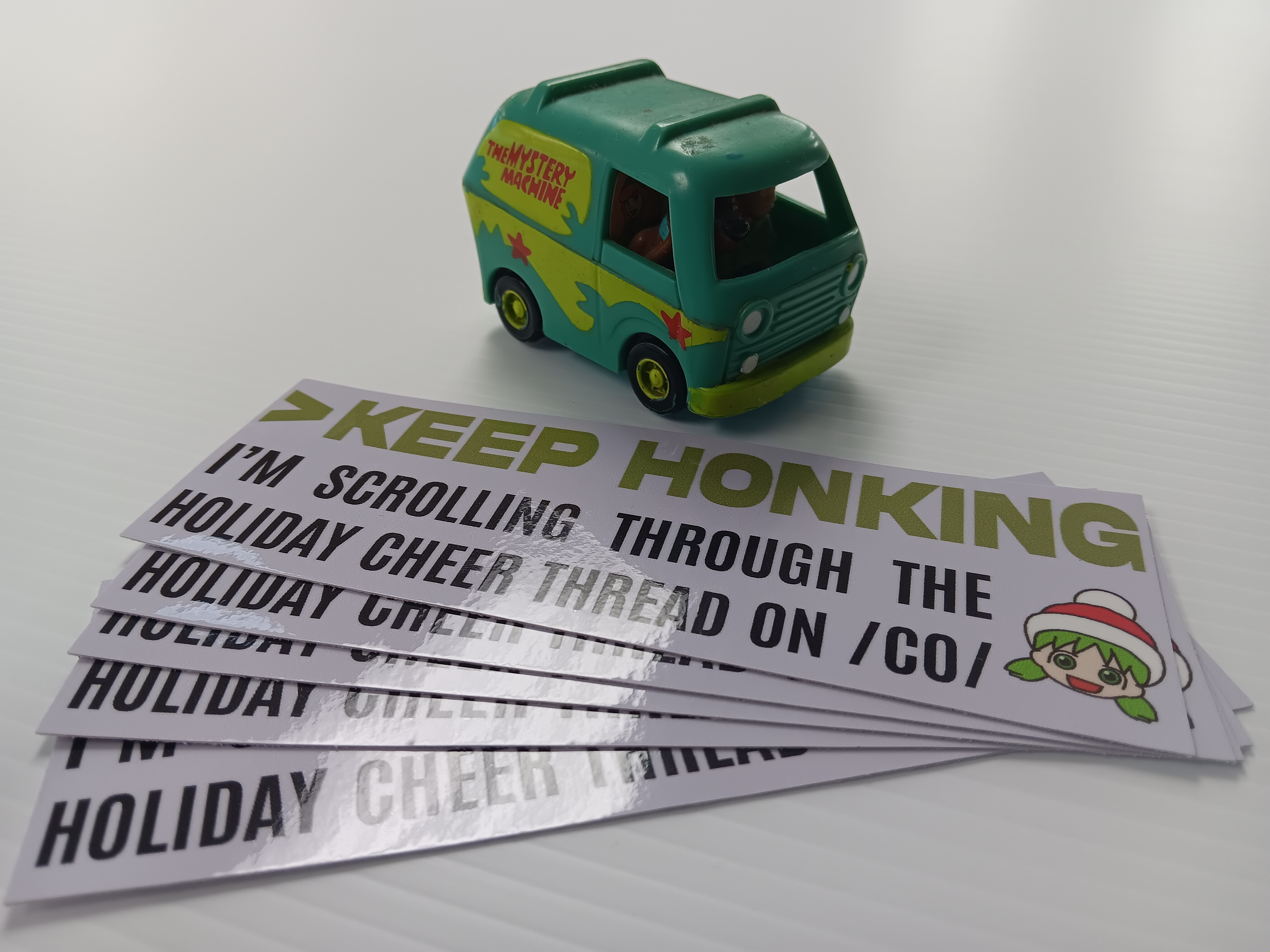 >>484031 Here's my entry! Hot off the presses. Assuming any of you NEETS have a car, I'd love to be able to send a few of these out to some fellow anons.