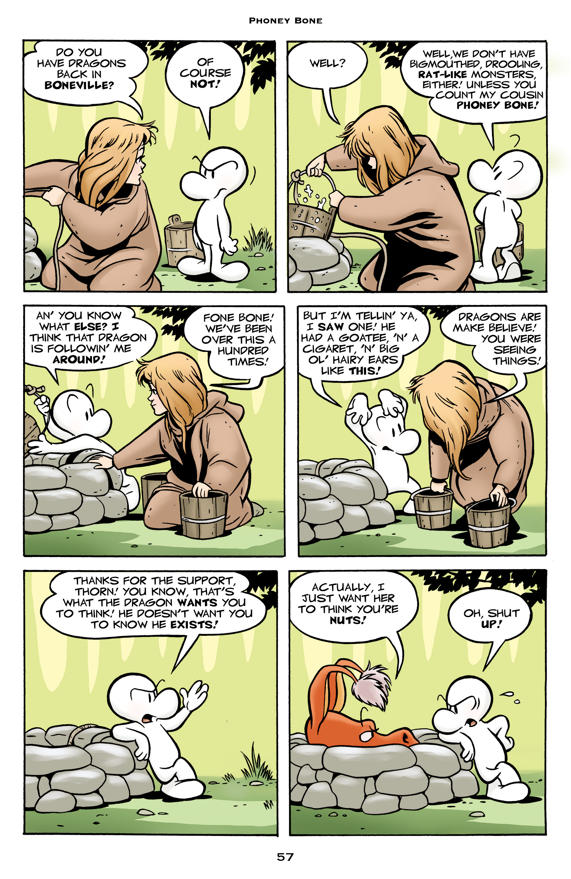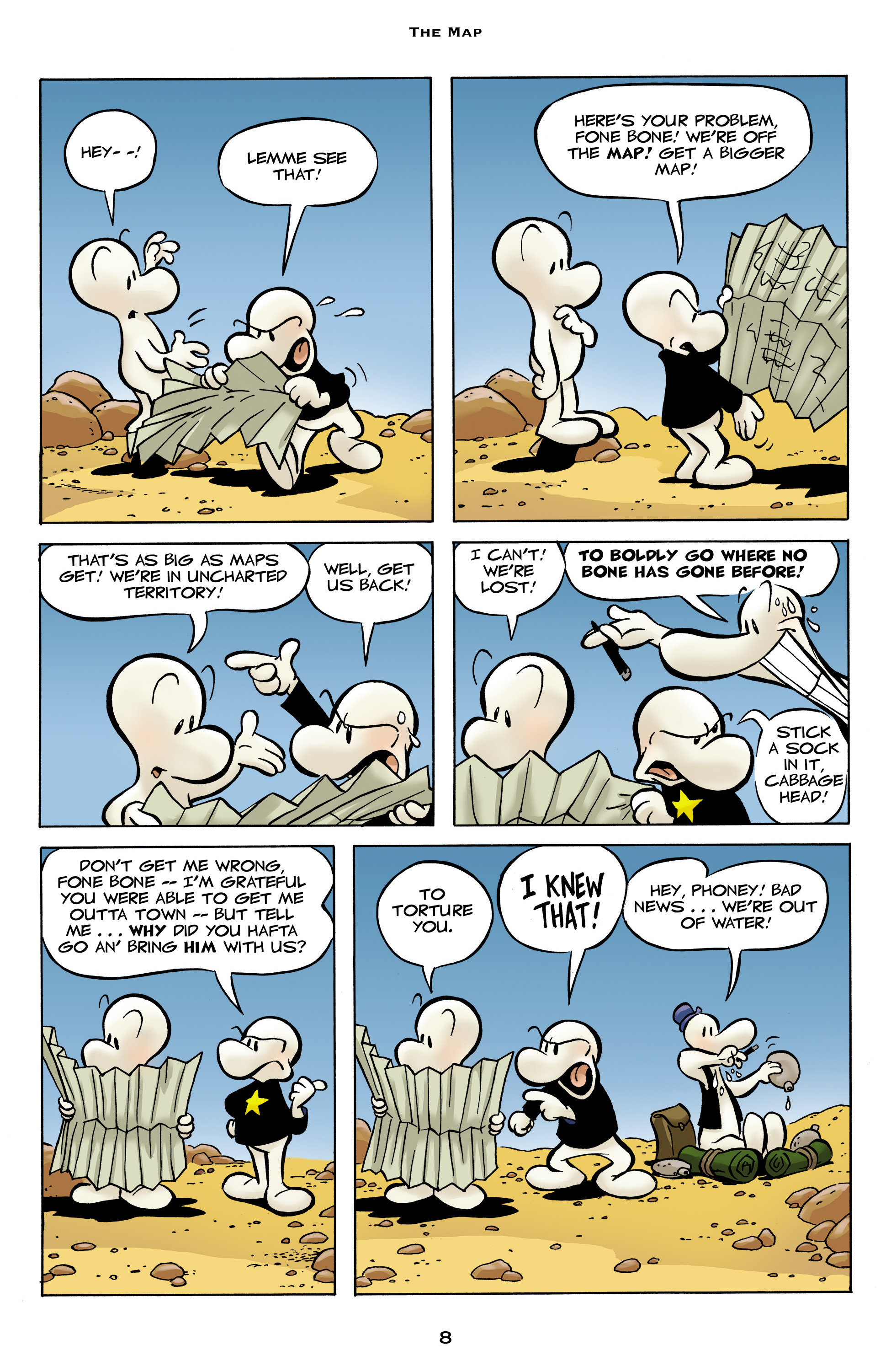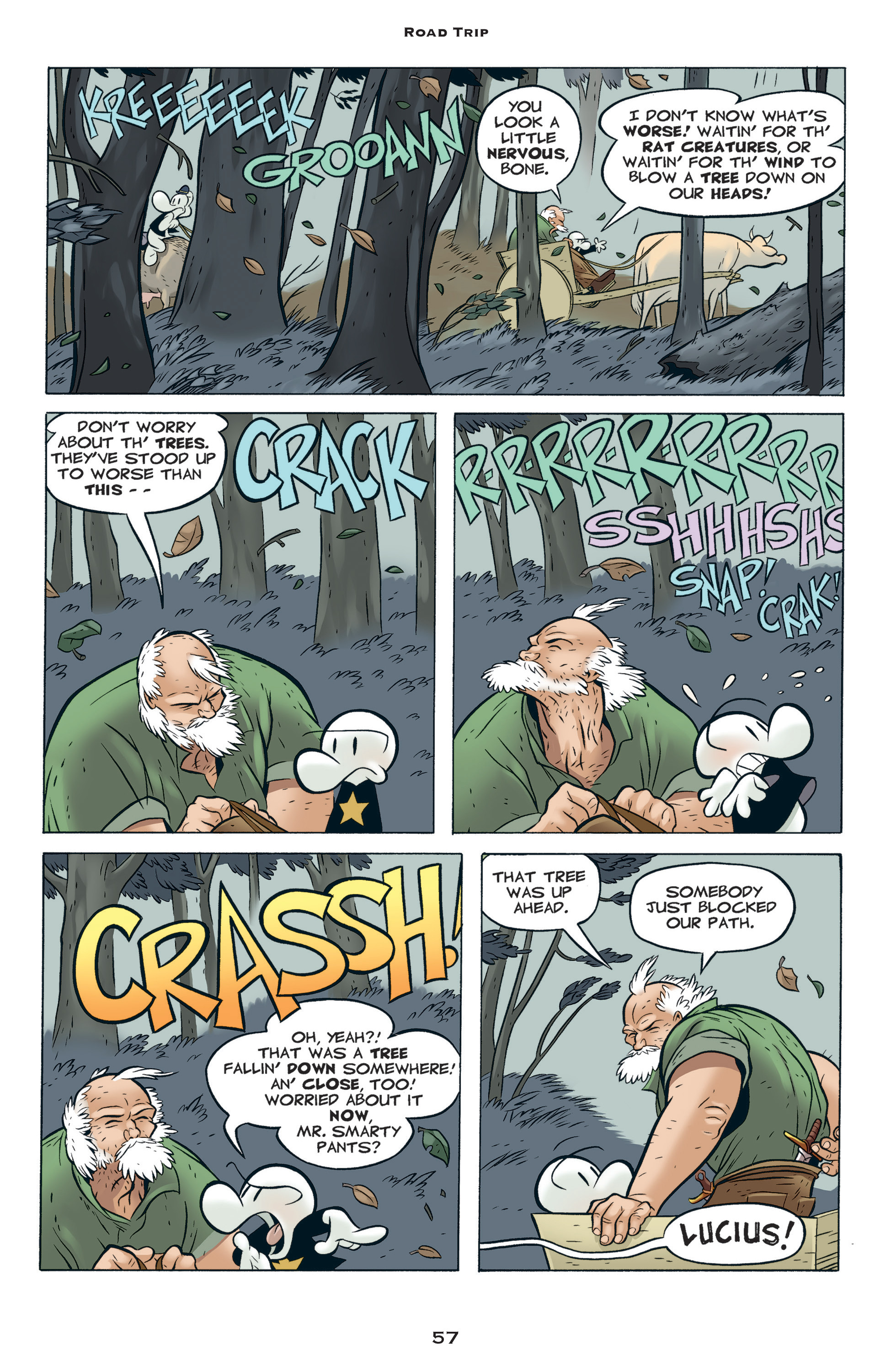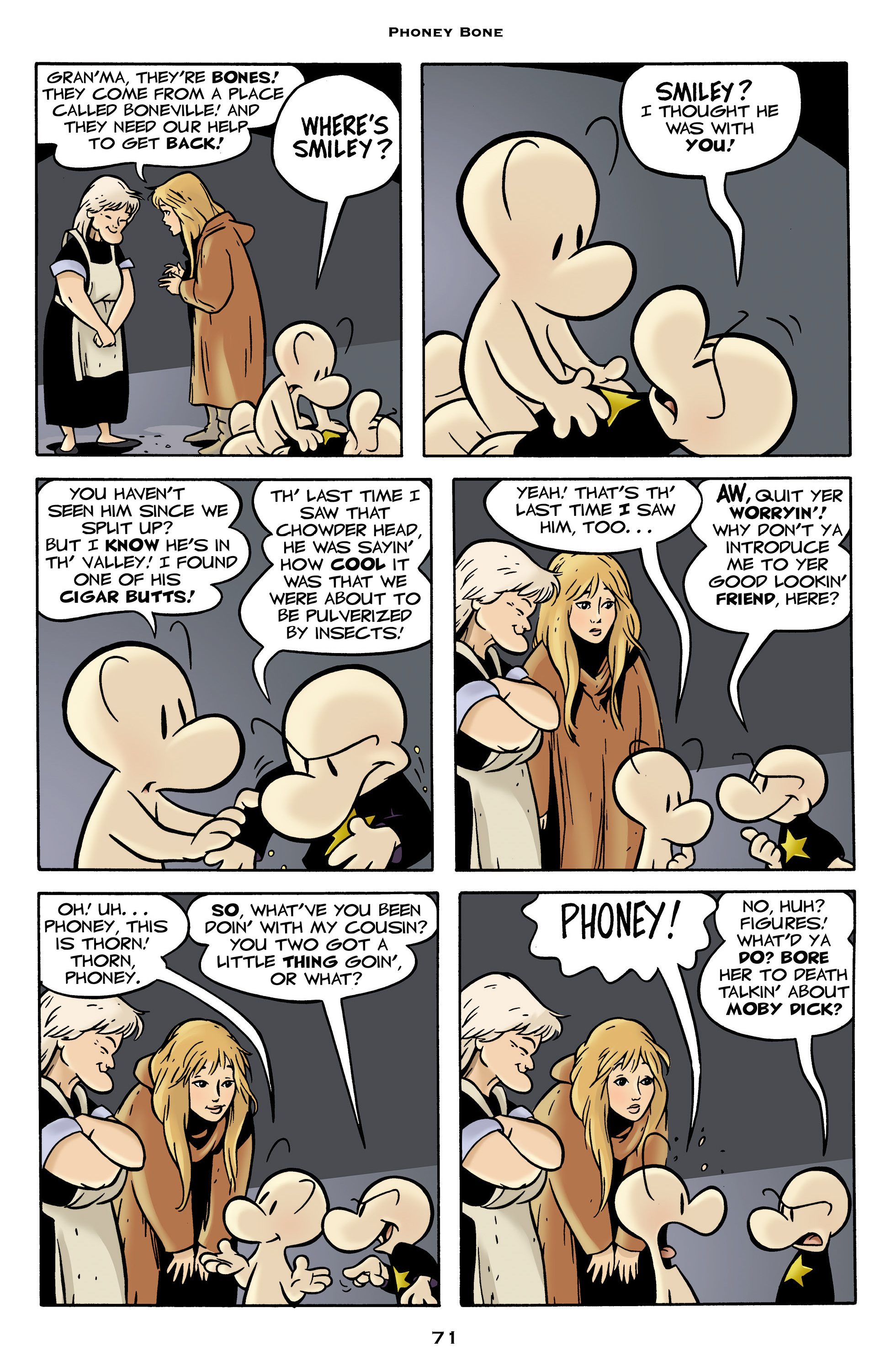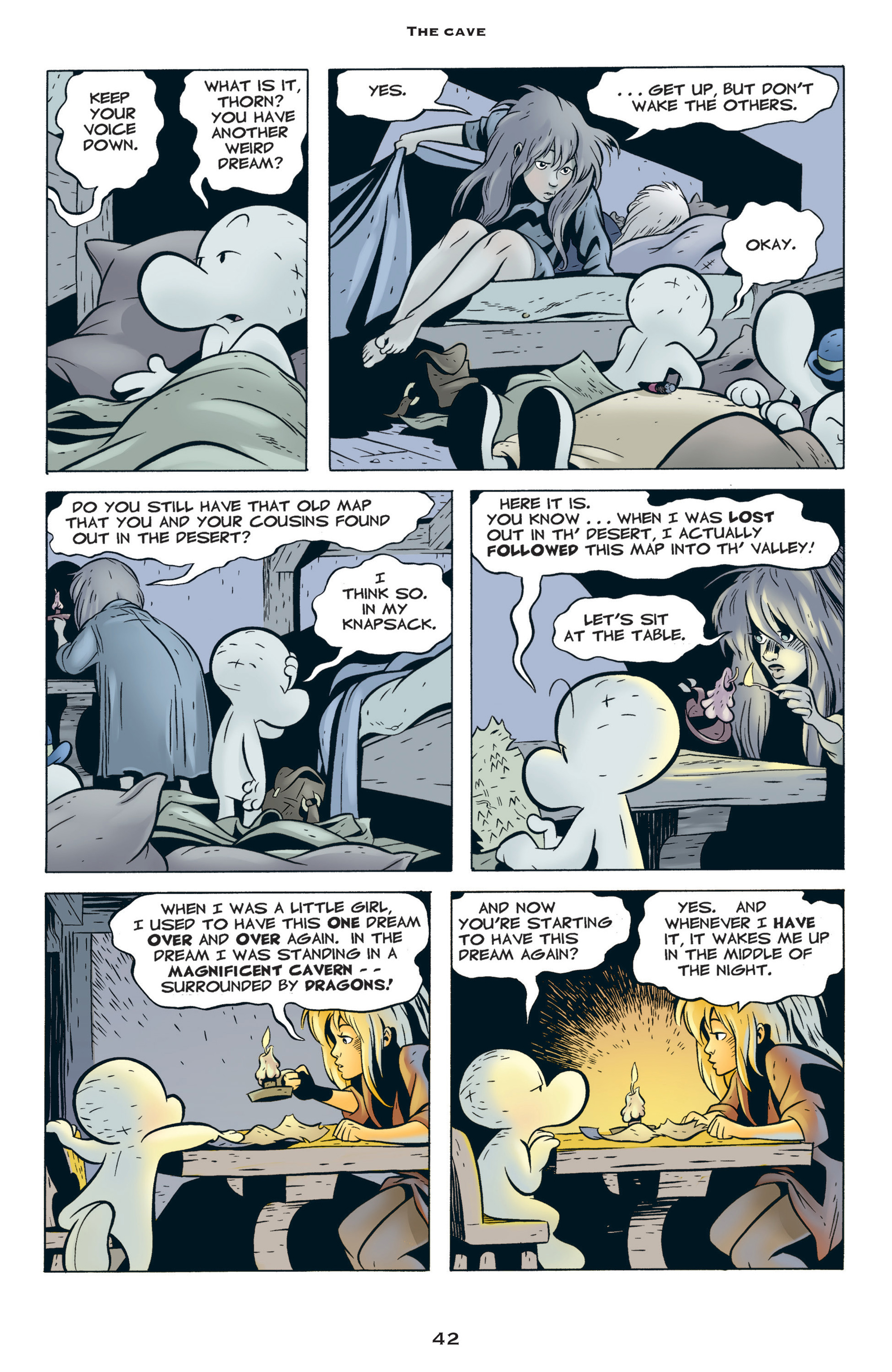 After being run out of Boneville, the three Bone cousins, Fone Bone, Phoney Bone, and Smiley Bone, are separated and lost in a vast uncharted desert. One by one, they find their way into a deep, forested valley filled with wonderful and terrifying creatures...