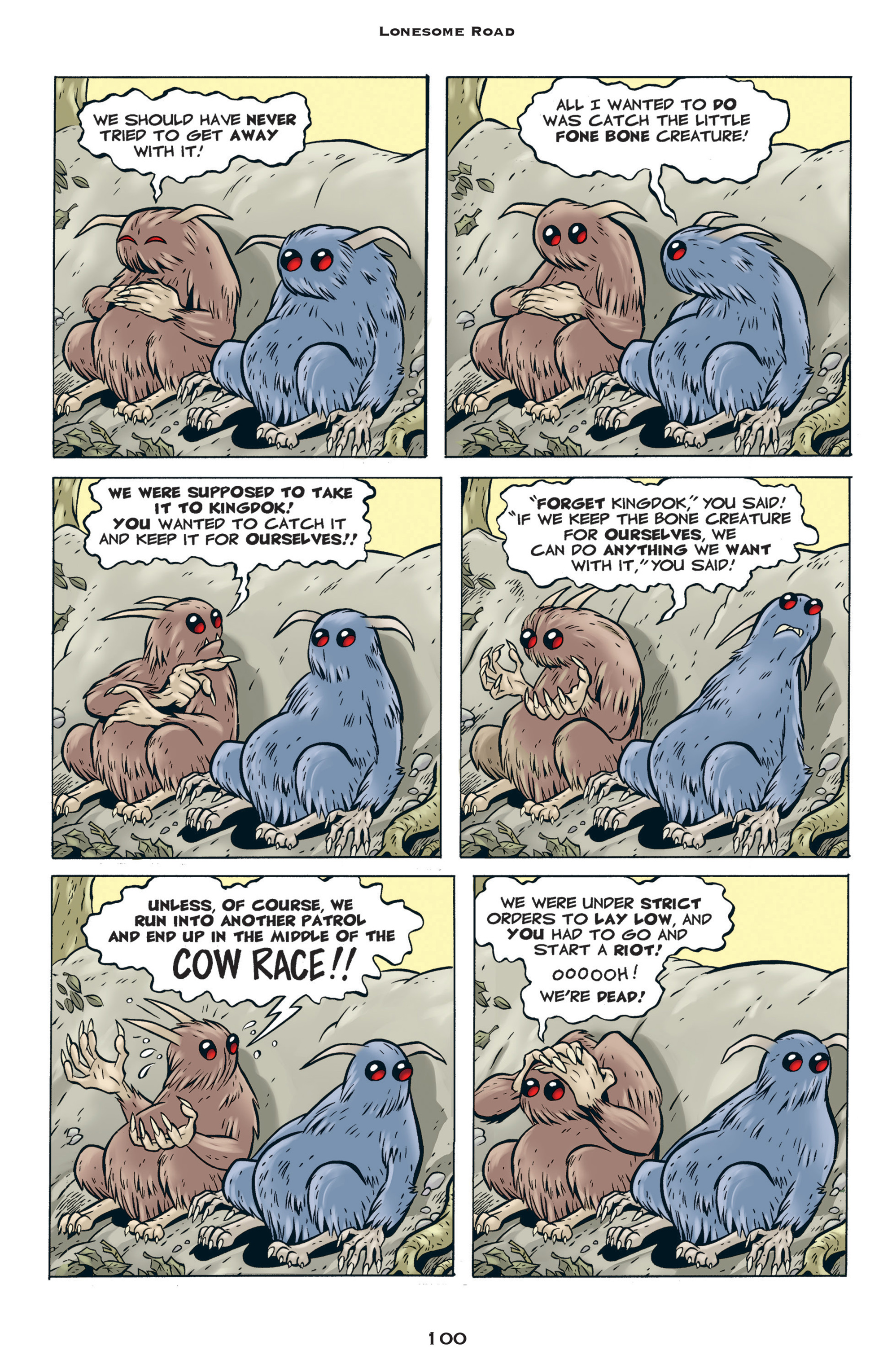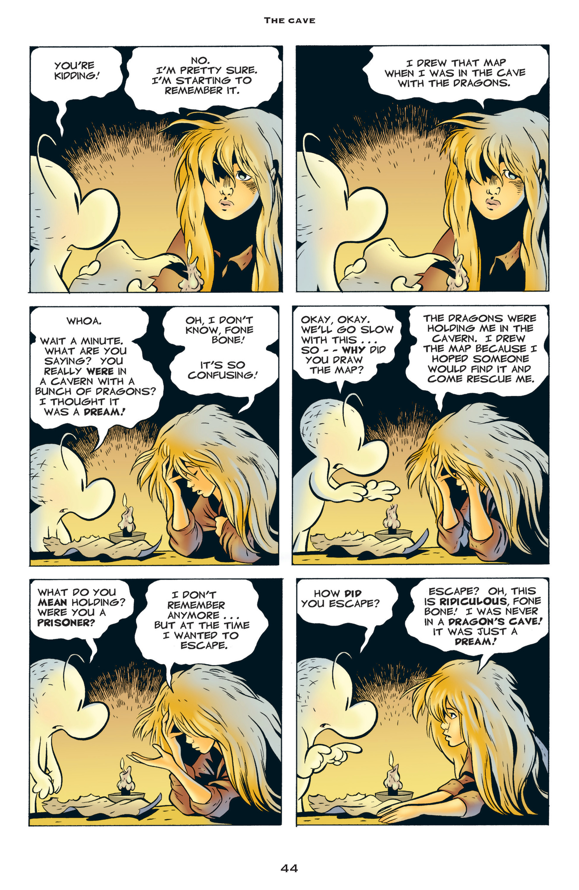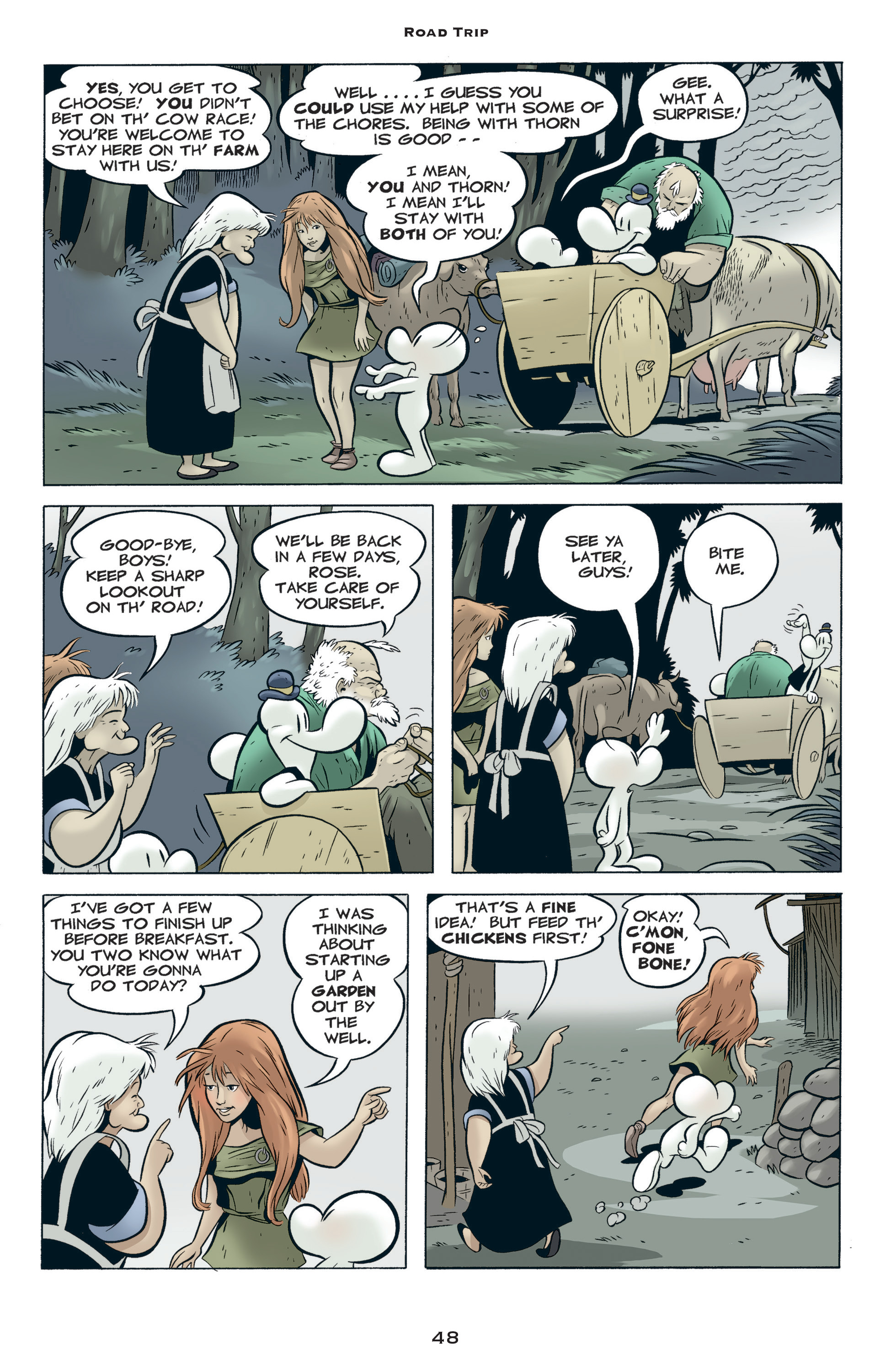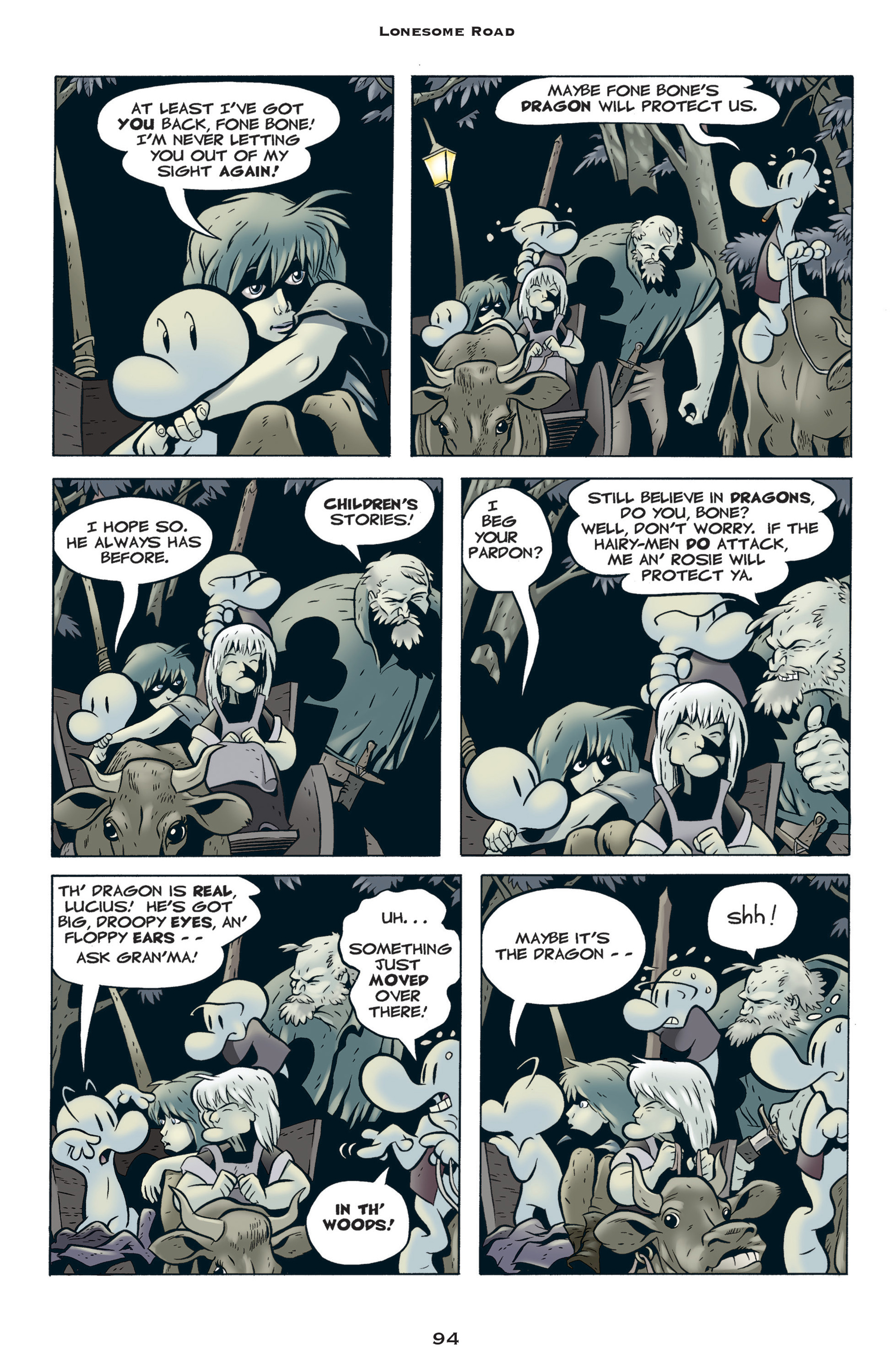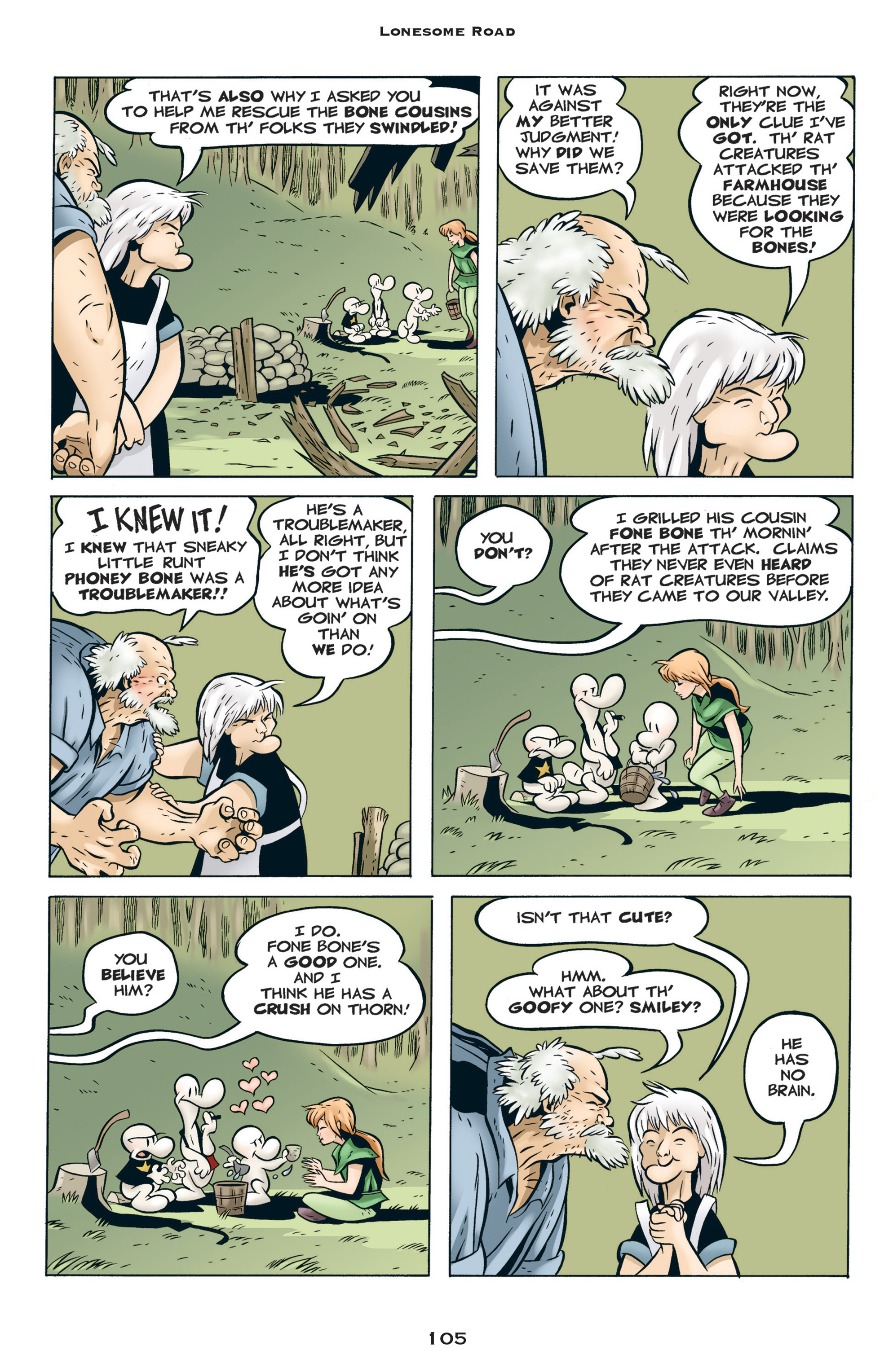 After being run out of Boneville, the three Bone cousins, Fone Bone, Phoney Bone, and Smiley Bone, are separated and lost in a vast uncharted desert. One by one, they find their way into a deep, forested valley filled with wonderful and terrifying creatures...