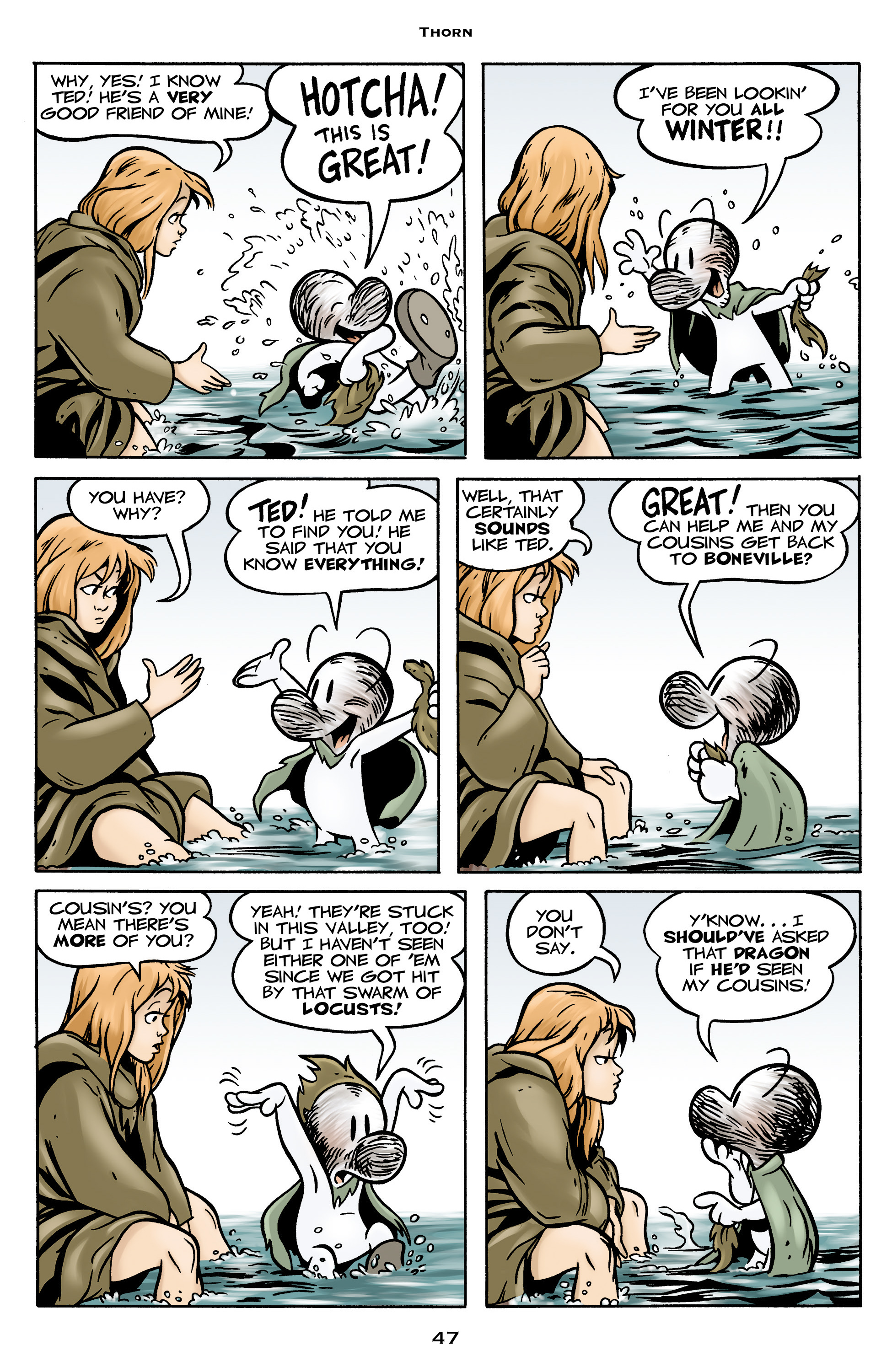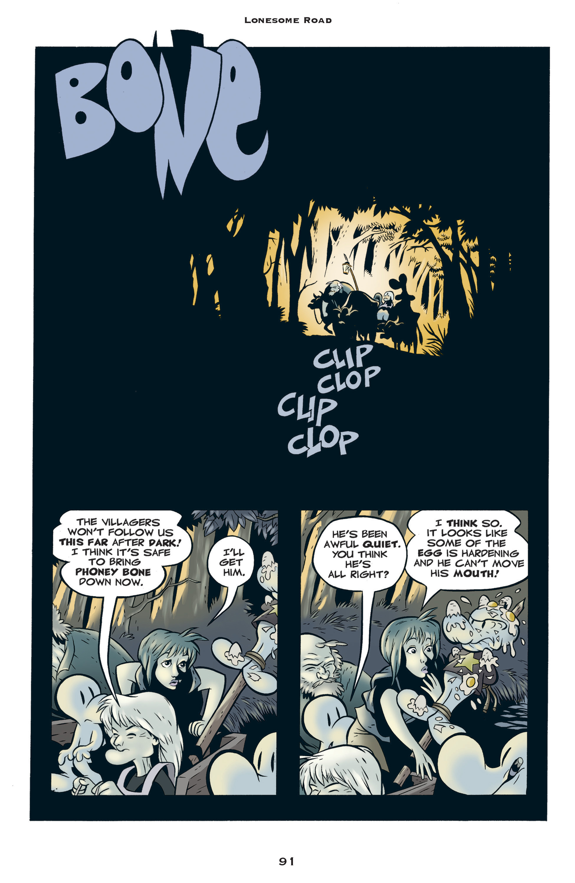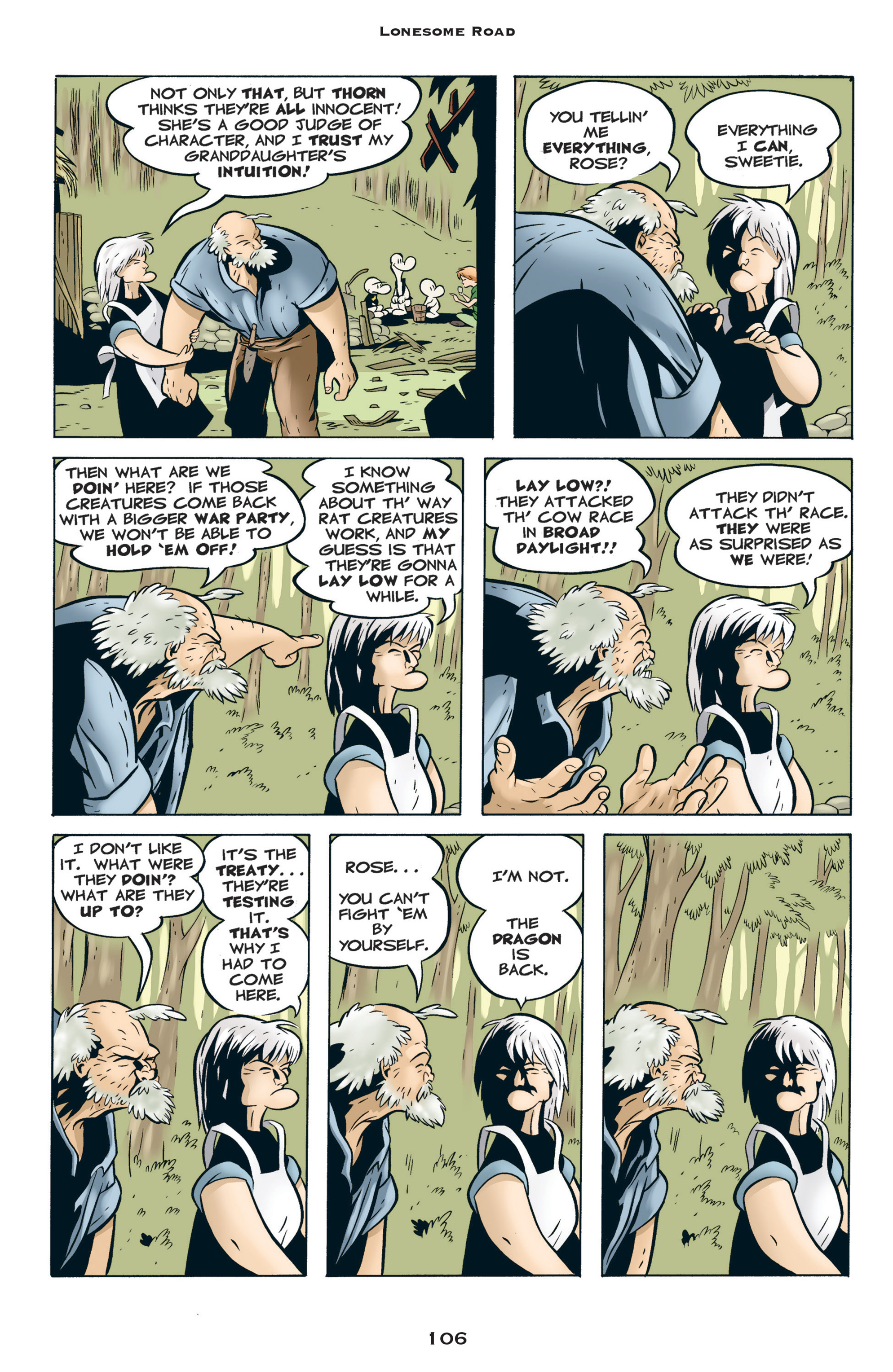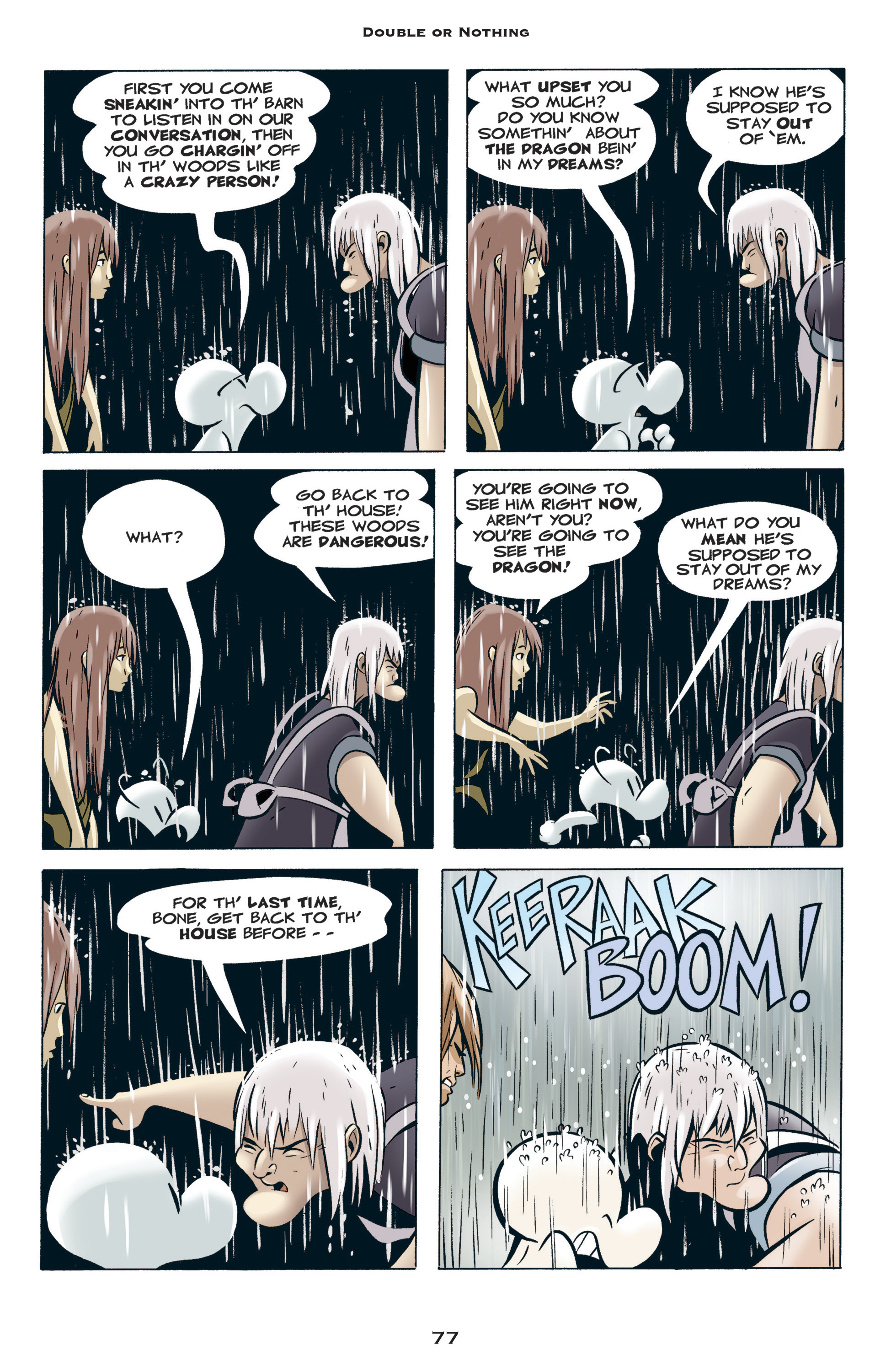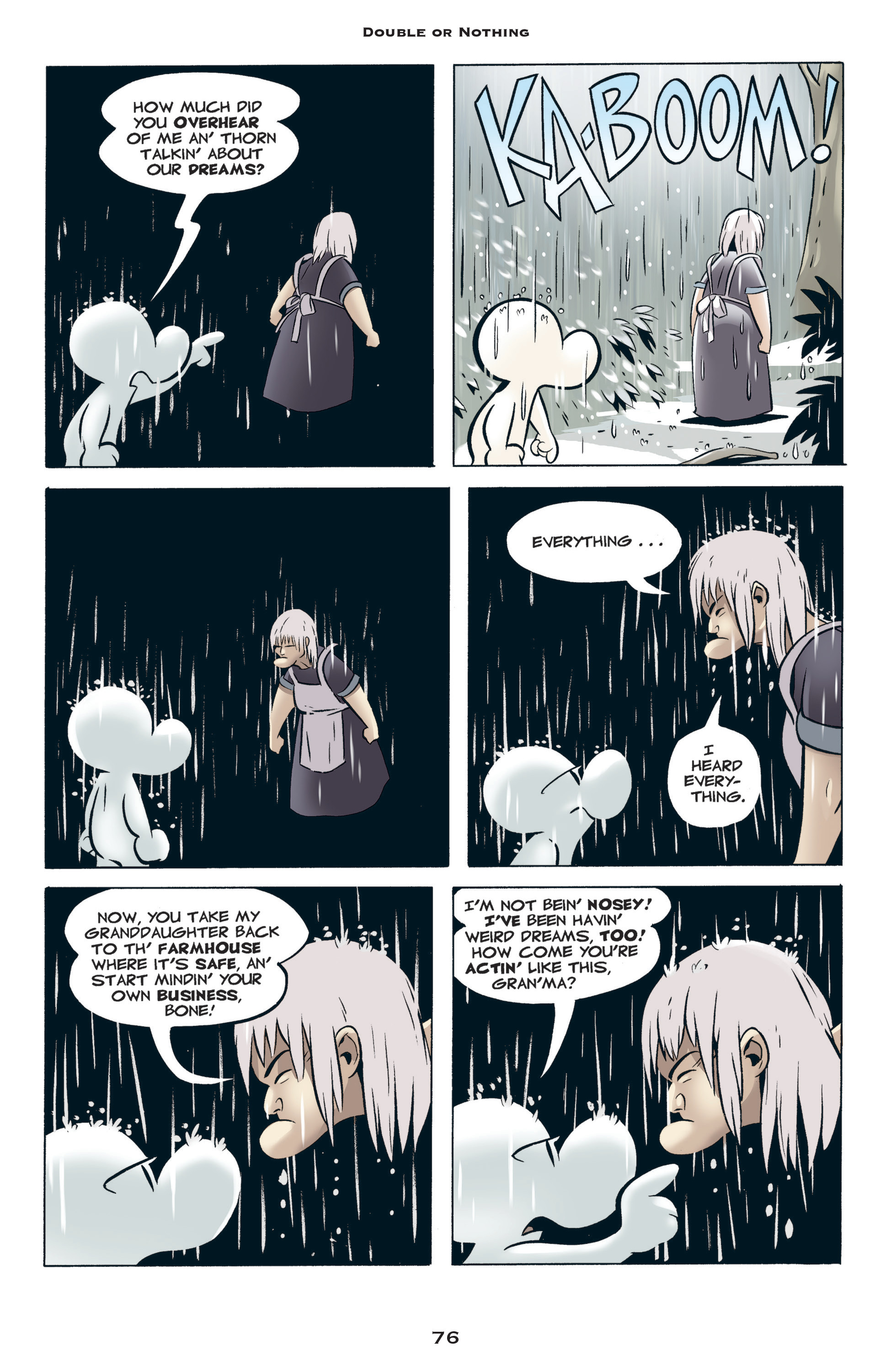 After being run out of Boneville, the three Bone cousins, Fone Bone, Phoney Bone, and Smiley Bone, are separated and lost in a vast uncharted desert. One by one, they find their way into a deep, forested valley filled with wonderful and terrifying creatures...