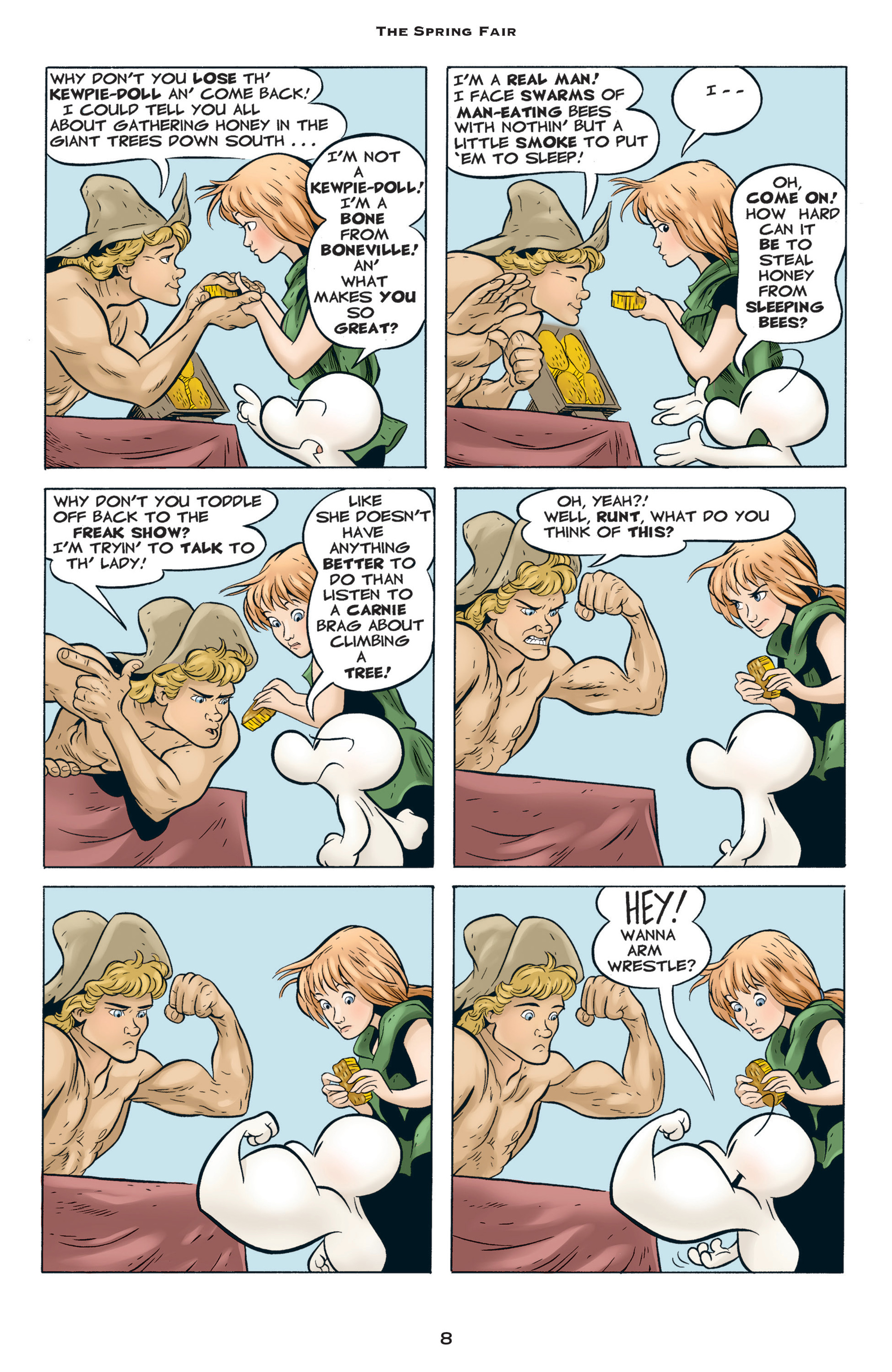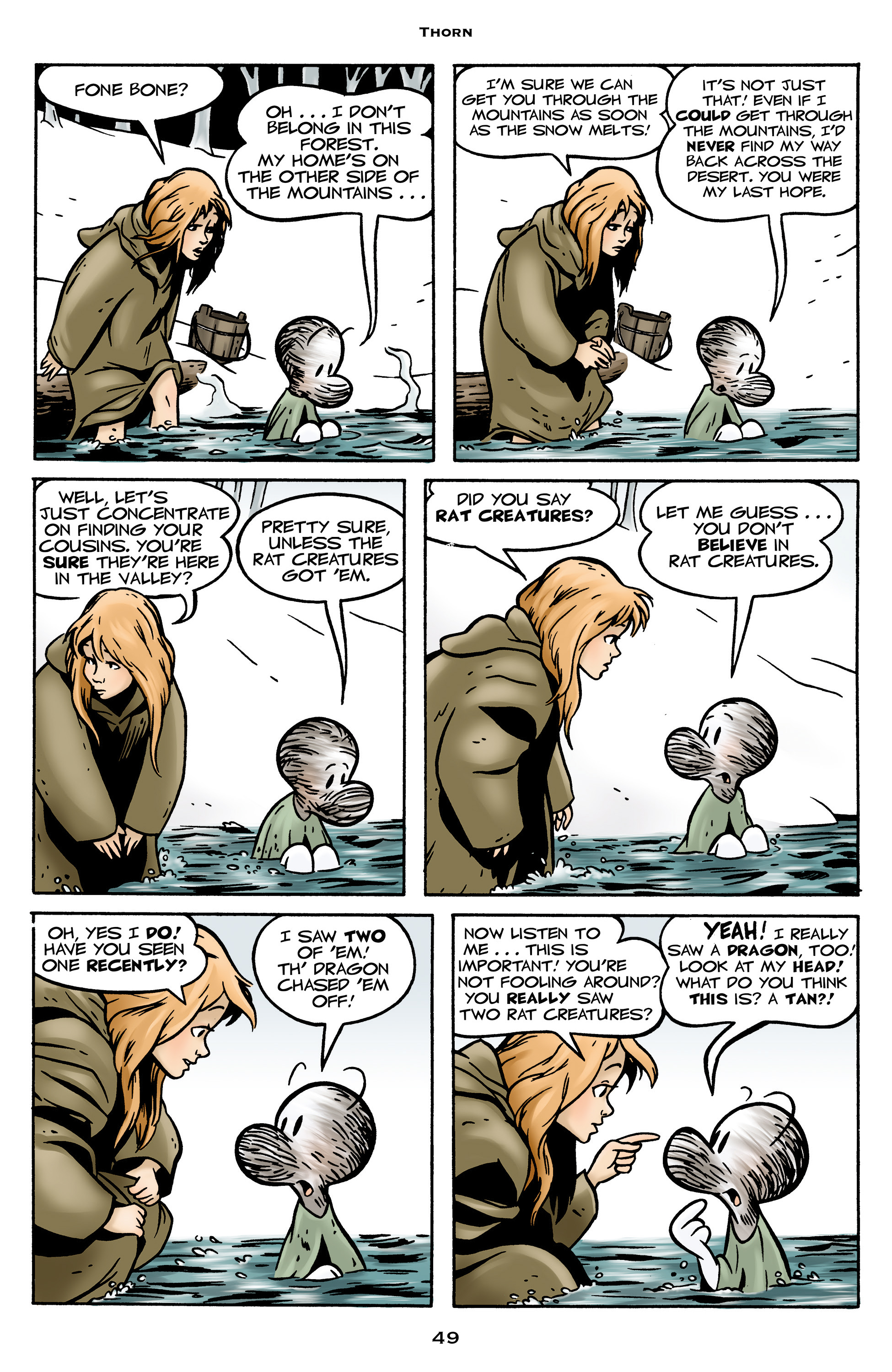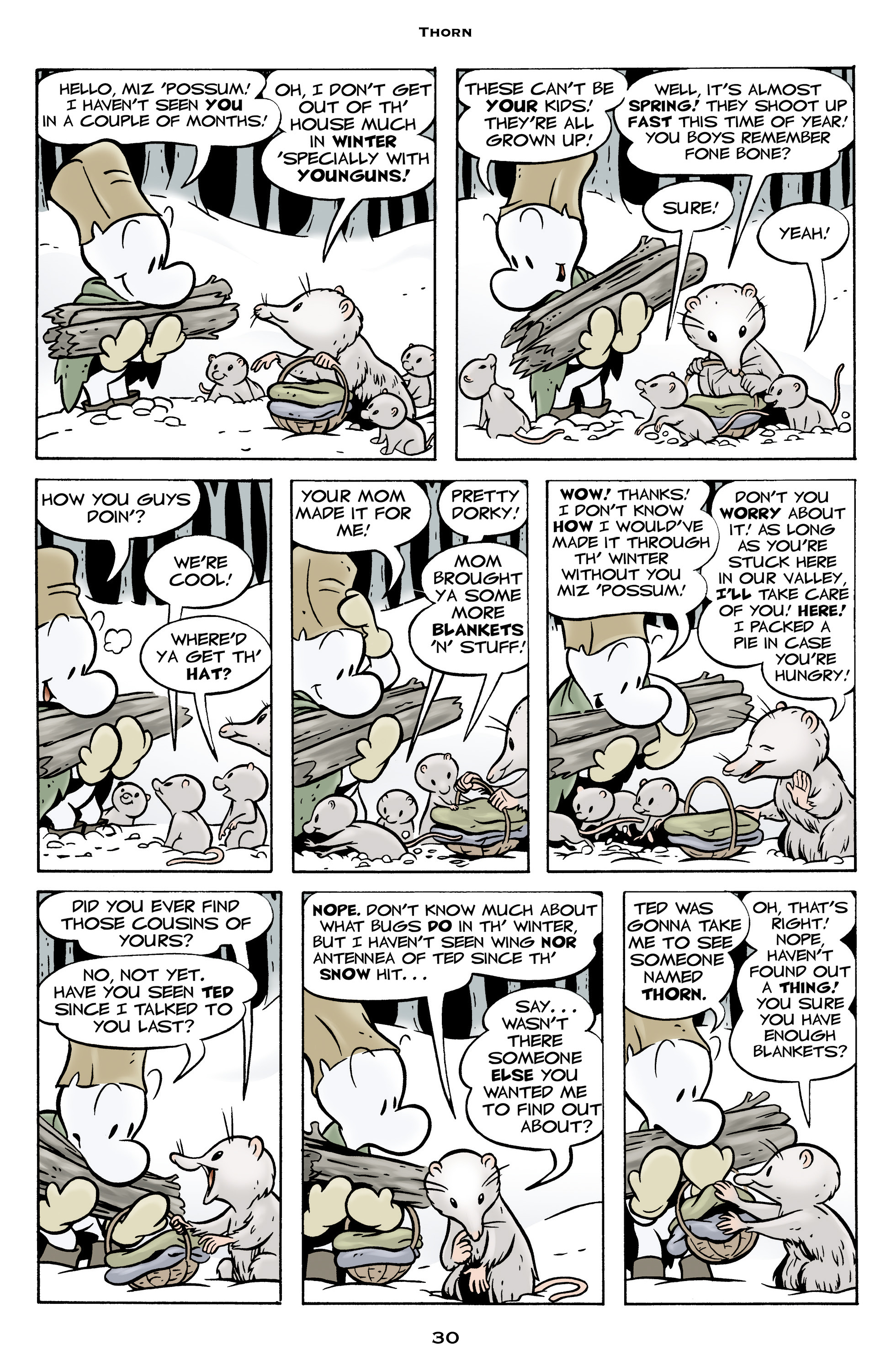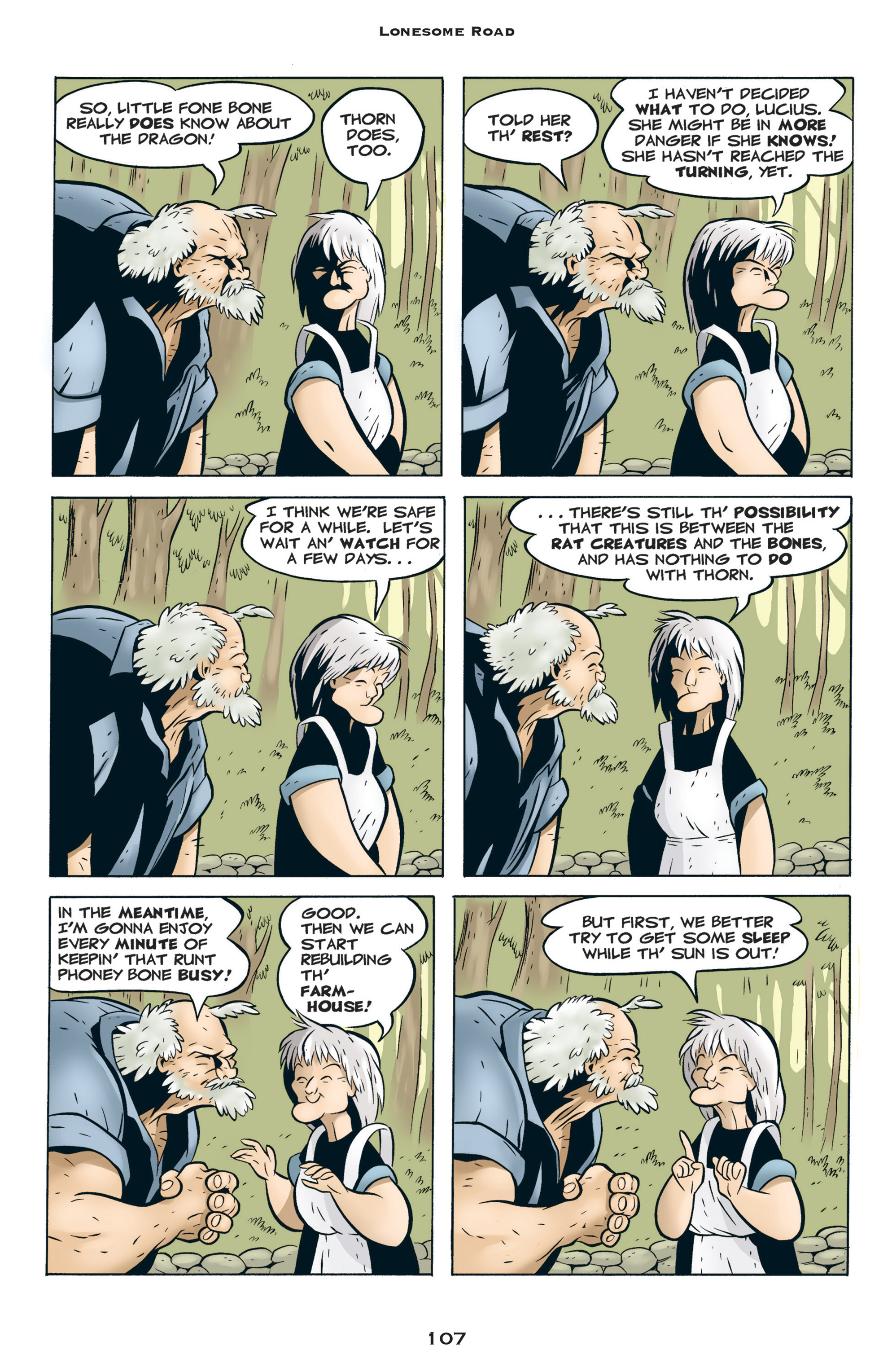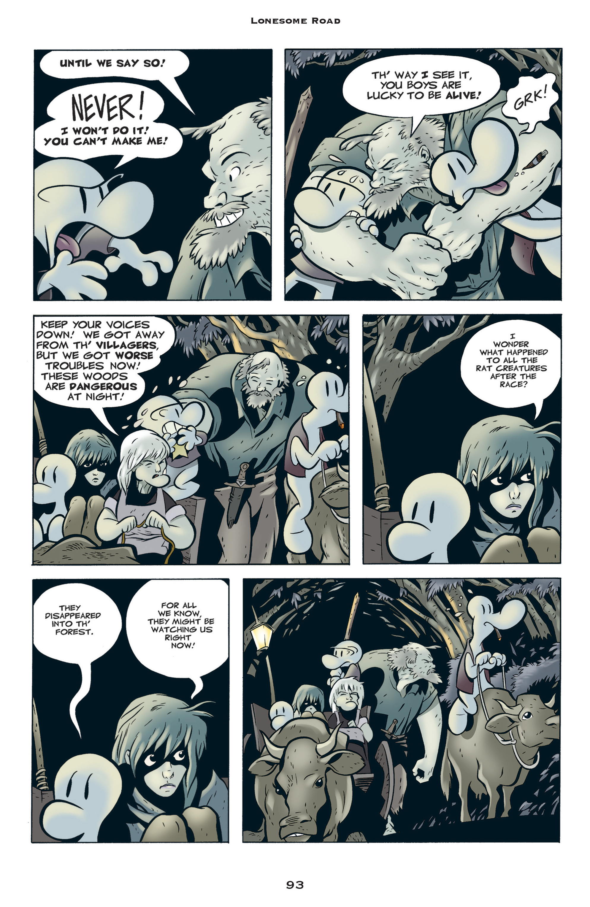 After being run out of Boneville, the three Bone cousins, Fone Bone, Phoney Bone, and Smiley Bone, are separated and lost in a vast uncharted desert. One by one, they find their way into a deep, forested valley filled with wonderful and terrifying creatures...