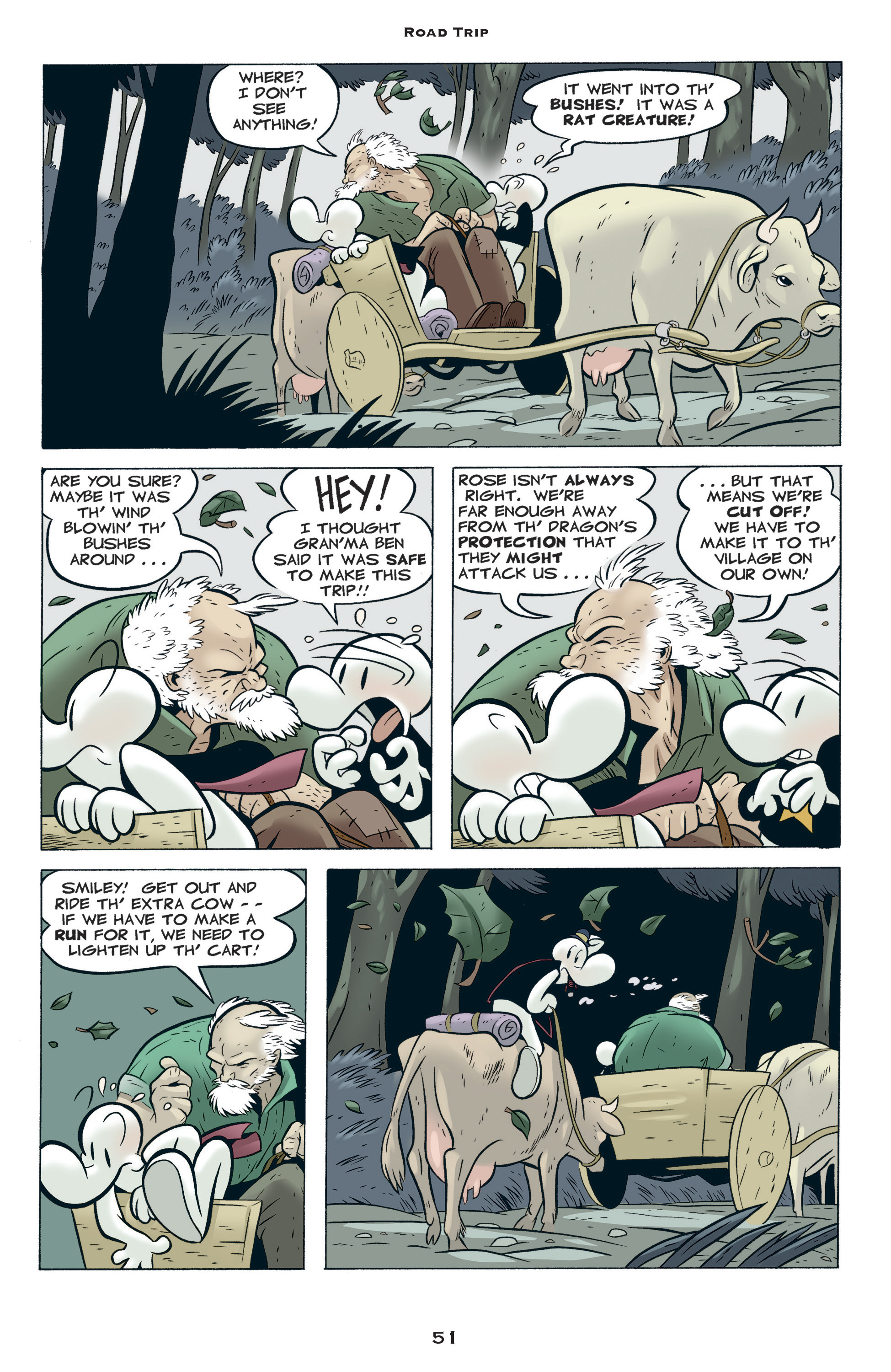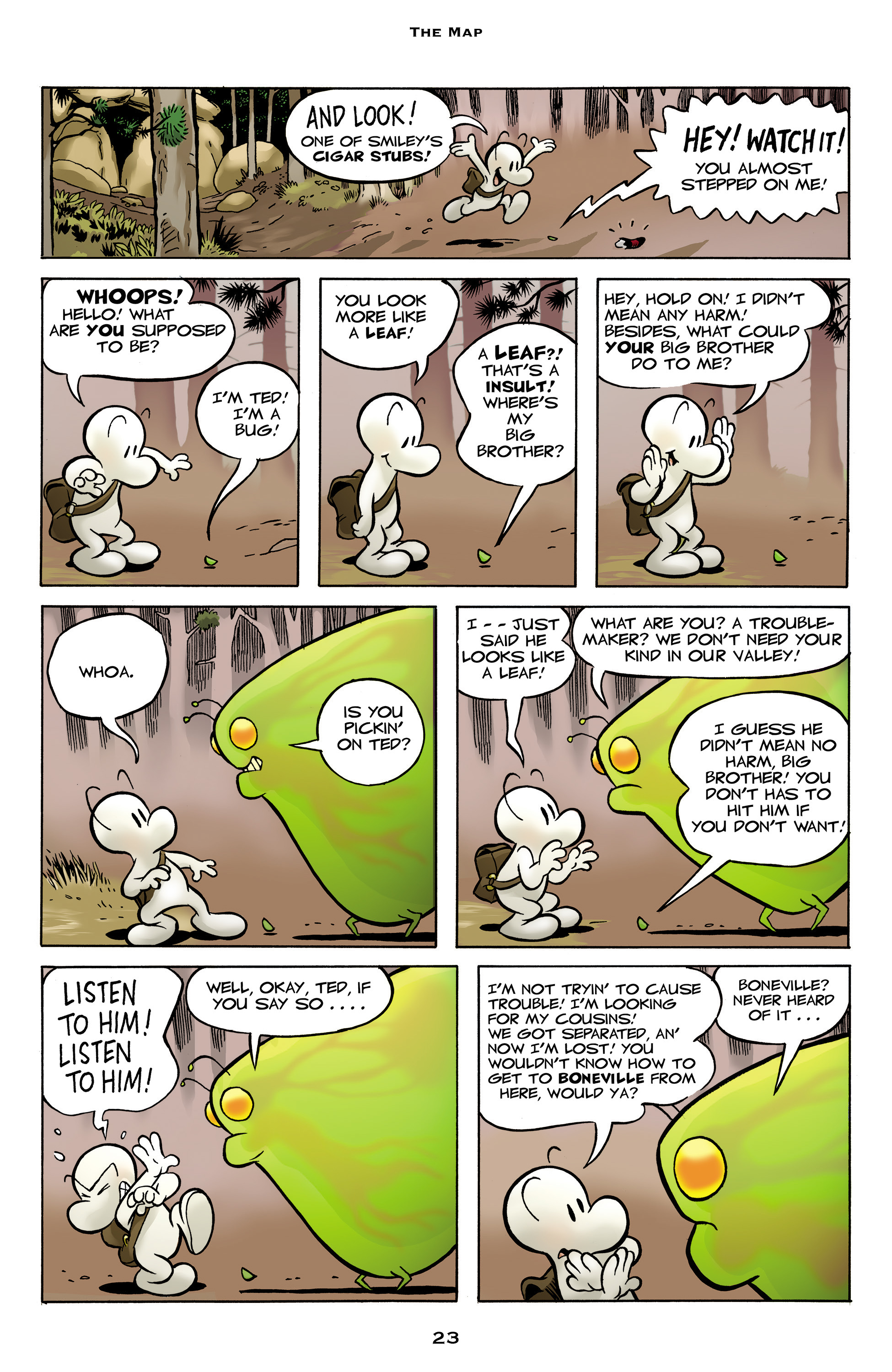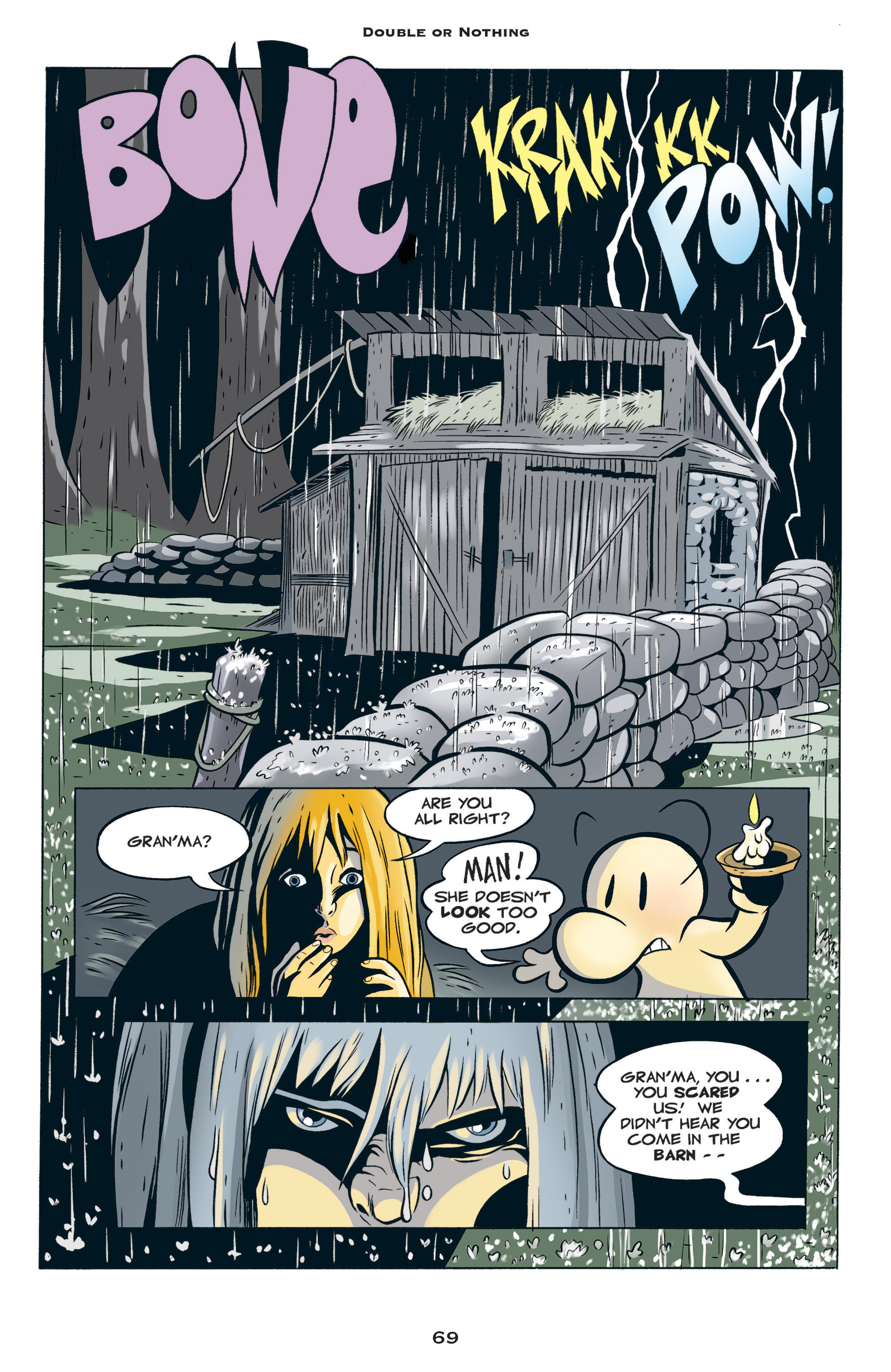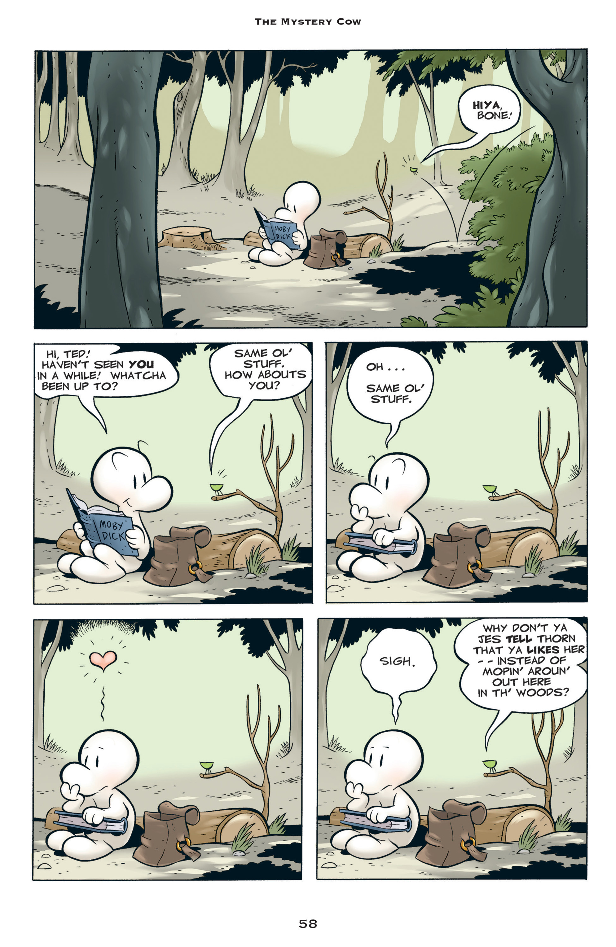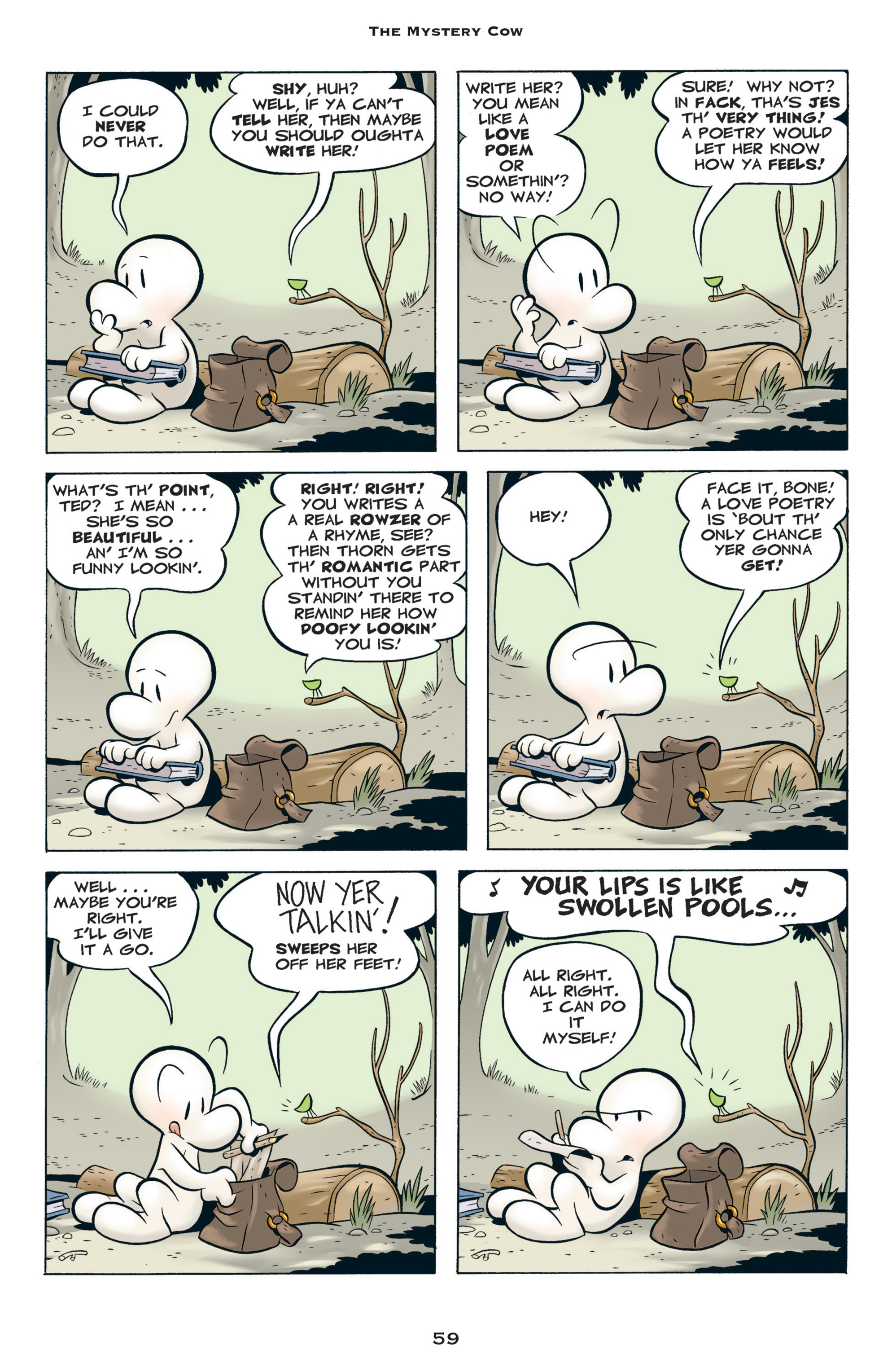 After being run out of Boneville, the three Bone cousins, Fone Bone, Phoney Bone, and Smiley Bone, are separated and lost in a vast uncharted desert. One by one, they find their way into a deep, forested valley filled with wonderful and terrifying creatures...