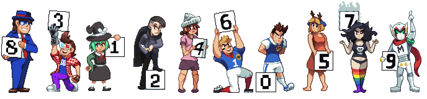 This was the last pic made, as far as I know the roster was never completed, the modeler guy didn't finish it. I think the next character we discussed to add was either Popful Mail or Rami-chan from Keio Flying Squadron since both were popular (possible because a dude on /vr/ once tracked down and scanned a previously unscanned Keio Flying Squadron / Popful Mail doujin by Studio Katsudon, it later got translated too).