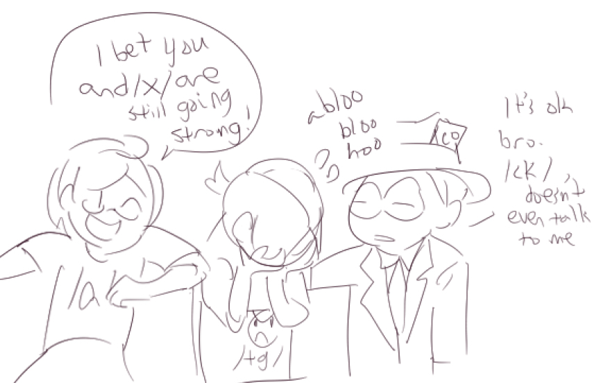 >>420078 Some background between them is that there is some brotherly rivalry. While Newfag is a combination of /new/b/ (Newfag is a bastardized 4chan version of newb -or newbie if pronouncing new and b separately- ), /mlpol/ is a combination of mlp and pol. Mlpol feels like he's a miracle child but also a black sheep. Newfag gets gaslit to hell and back from other boards just for existing and looking like b. In response, he acts up and pranks people, which accidentally fulfills what they think about him being a little version of b.