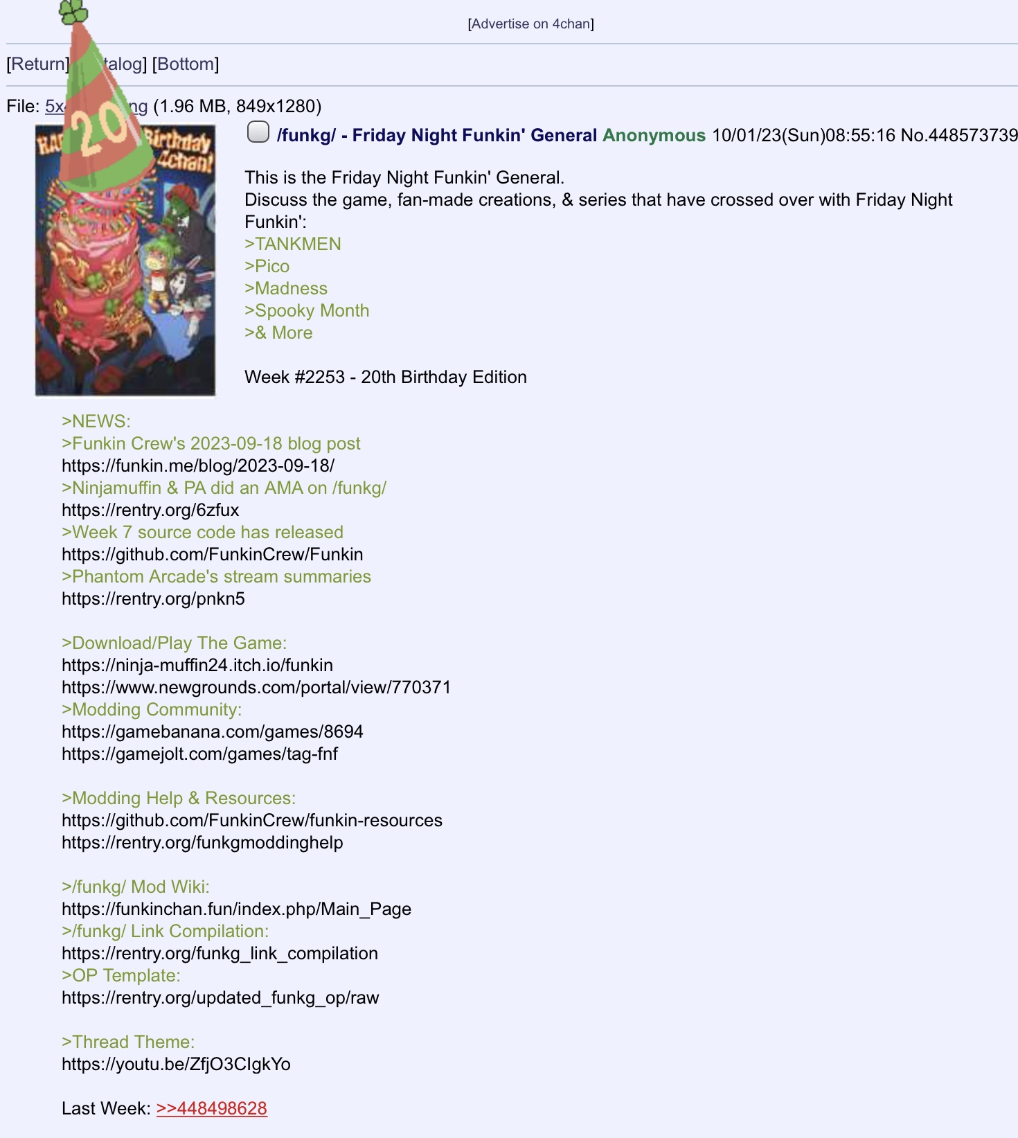 >/funkg/ Mod Wiki: https://funkinchan.fun/index.php/Main_Page >/funkg/ Link Compilation: https://rentry.org/funkg_link_comp >OP Template: https://rentry.org/funkg_op_template/raw