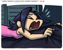 Now she's a psycho killer who goes around stabbing other people to death for teh lolz and will cut off your nuts.