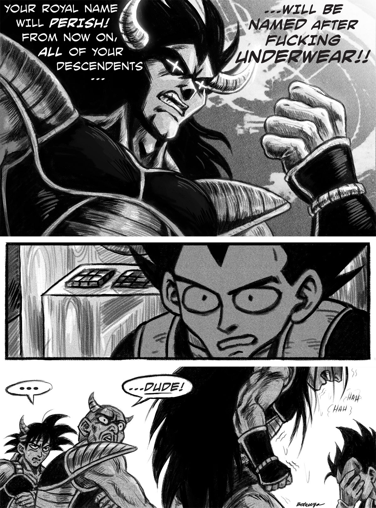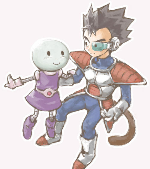 And along with being little stick people they don't even have tails in their alternate universe! (most likely for the same reason all the mainline saiyans ended up losing their tails, artist laziness to get out of having to draw them)