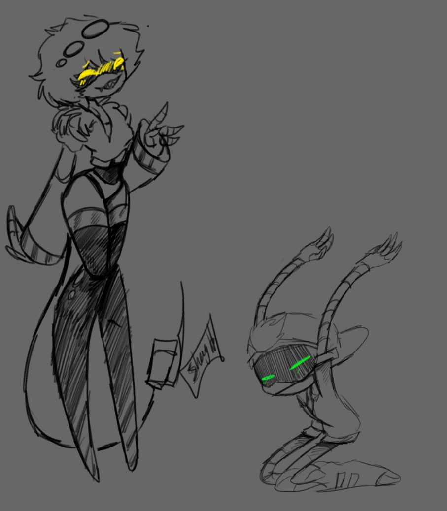 whe i was working on the newer ref i kept thinking myself "dident i have an idea for a gap in her teeth?" but her original ref dident show teeth and that dumb drawing of her grinning dident have one, so i just chalked it up to going insane.