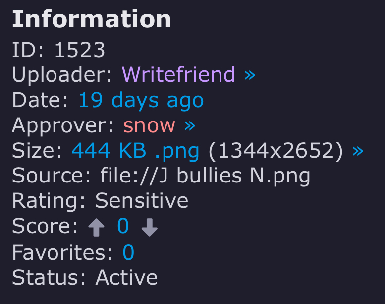 To keep things separate and organized, anything related to the booru goes here. If you have any questions, suggestions, or find anything odd in there, discuss it here.