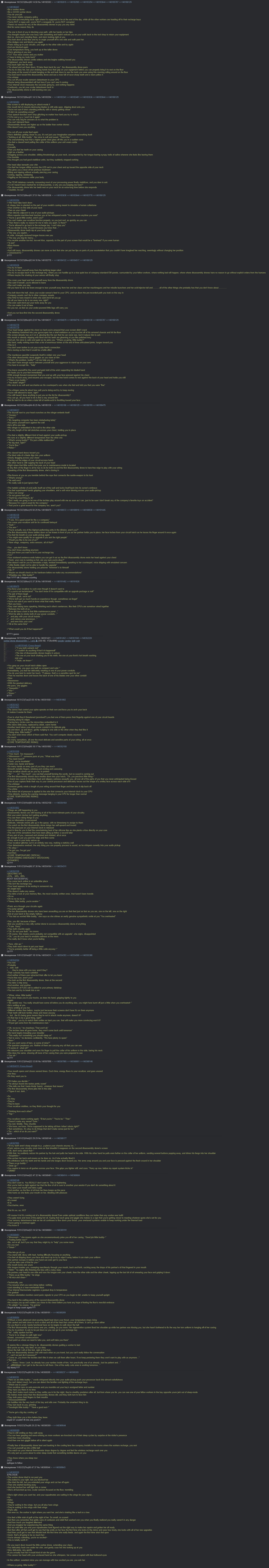 Hello Friends! Good morning! Or evening, or night. You know how it goes, let's talk about the Drones, since it's our favorite topic here. These Threads are full of Drone discussion, isn't that beautiful? The impressive Booru: https://dronebooru.co The wheel of astonishing OCs: https://wheelofnames.com/8hc-stc And the last Thread: >>109262