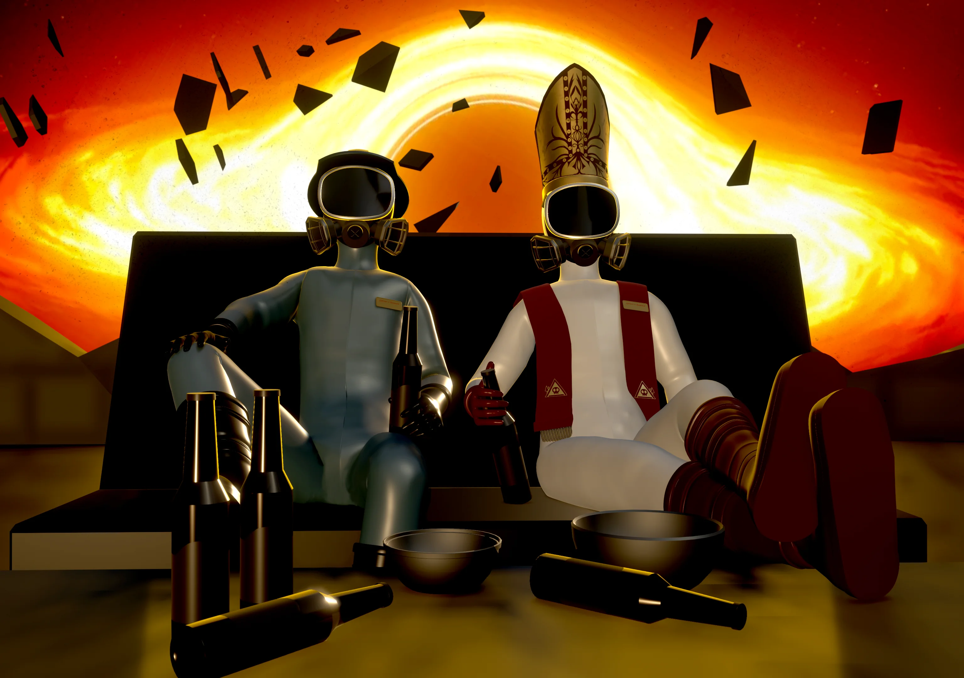 >>1251 >As you enter everything is, of course, pitch black. >Only the doorway is illuminated by the moonlight and the rest is like void. >You grab your energy cutlass from your hip pouch and flick the switch at the back of the handle. >It then ignites itself with a hiss as the red glowing blade appears mere centimeters from your face. >You then point the blade forwards as to illuminate the front so that you can see anything. >As you move forward you come across one of these stanchions with the fabric barriers between them. >You grab one end and unhook it. It unceremoniously drops down and hits the other stanchion with a hollow dud. Jeez, not anything’s been spared by the freezing cold. >You then move down a hallway until you come face to face with another thing you don’t like. >On the wall is the logo of JCJenson (IN SPAAACE!) painted with the lettering “INTERACTIVE CORPORATE MUSEUM” bellow it. >Oh, it’s one of those museums JCJ build. >Eh, maybe you’ll smash some shitty neo-brutalist artwork they so much like to make. >So you continue down the hallway and enter what you assume is a big hallway of sorts since the walls are wide enough that your cutlass can’t illuminate them anymore.