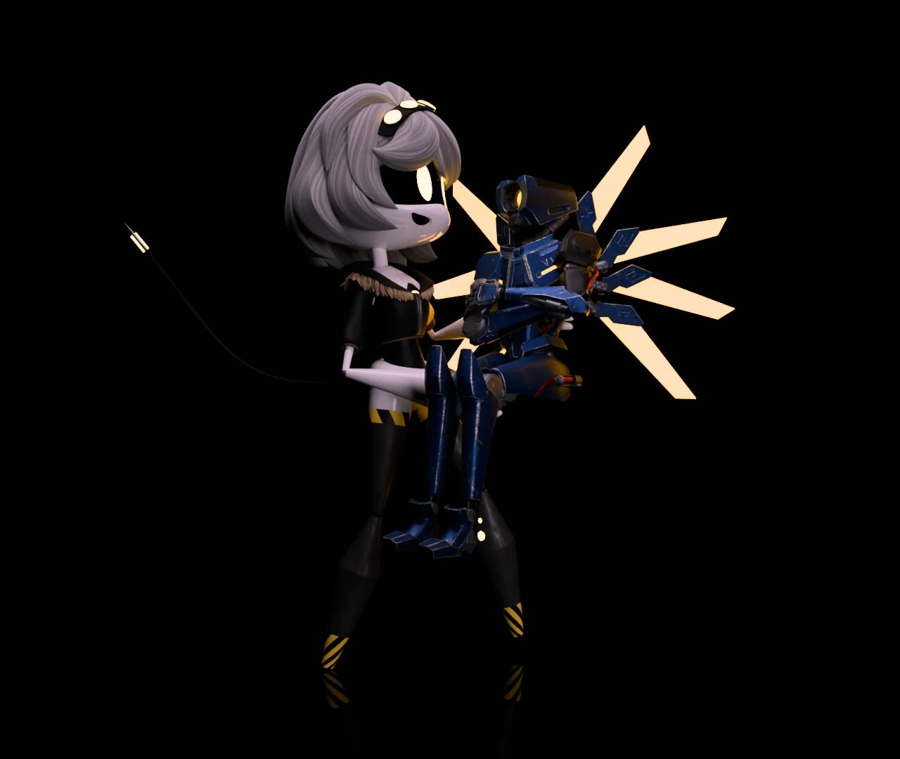 >S(ally) >Believed to have been the spark to ignite the coreplay phase by giving her core to Anon as a gift of her affection for him. >The most calm in the group with a personality akin to Doll, the Quiet One. She’s introverted in a way that you’ll rarely see her speak to anyone outside of her group. >But she is not without emotion. She likes to express herself by being a star performer for the company’s plays, where she likes to put all her emotion into. >She has feline-like tendencies, using her metal claws the most often and chasing any red dot around the office. >Is particular about keeping her hair the way it is, less any disturbance to it causes her to get irritated and try to fix it.
