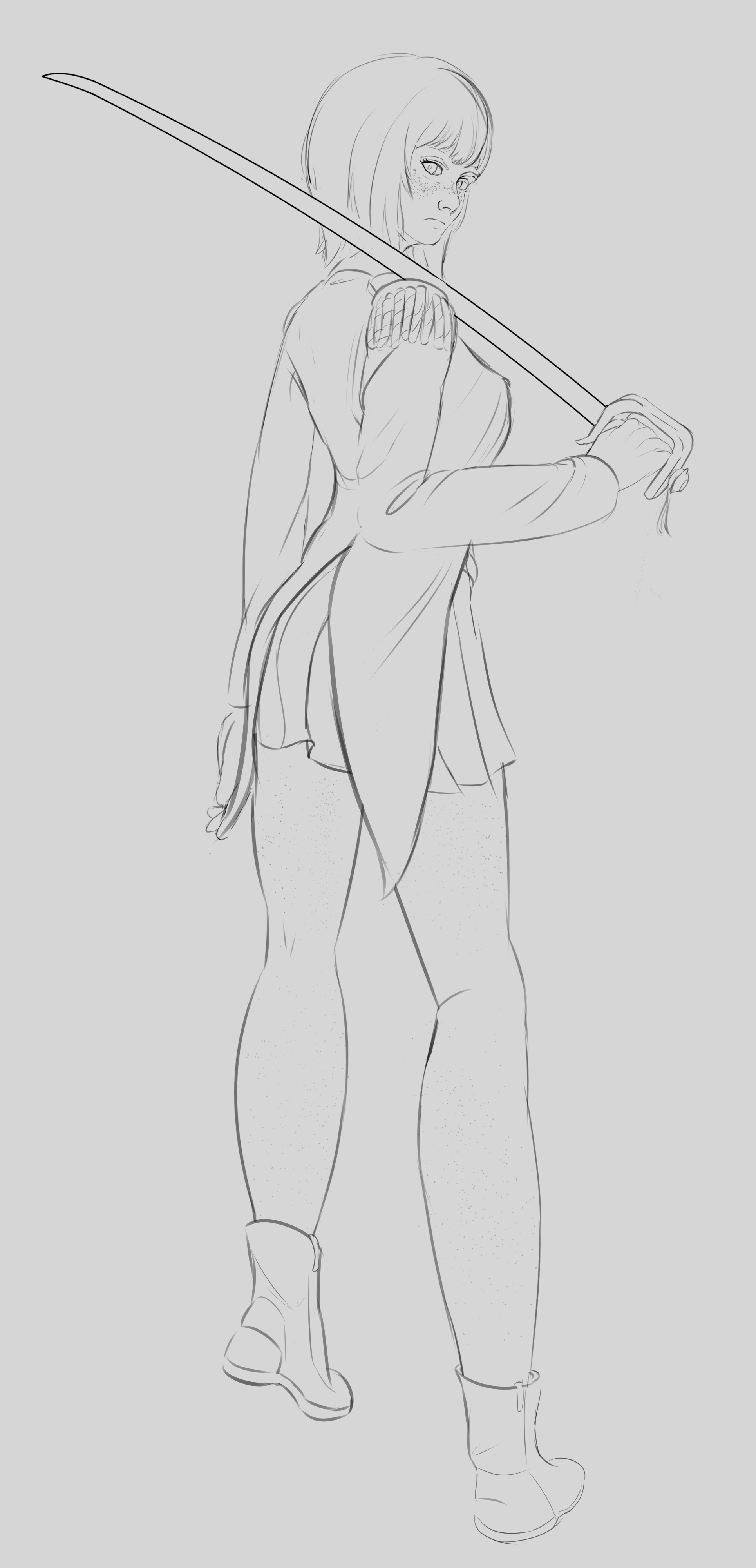 >>127834 Always good to see you doing work. Unfortunately, I don't look at people very much so I can't point out any oddities, except maybe that the hilt of her saber could show a bit under her hand?