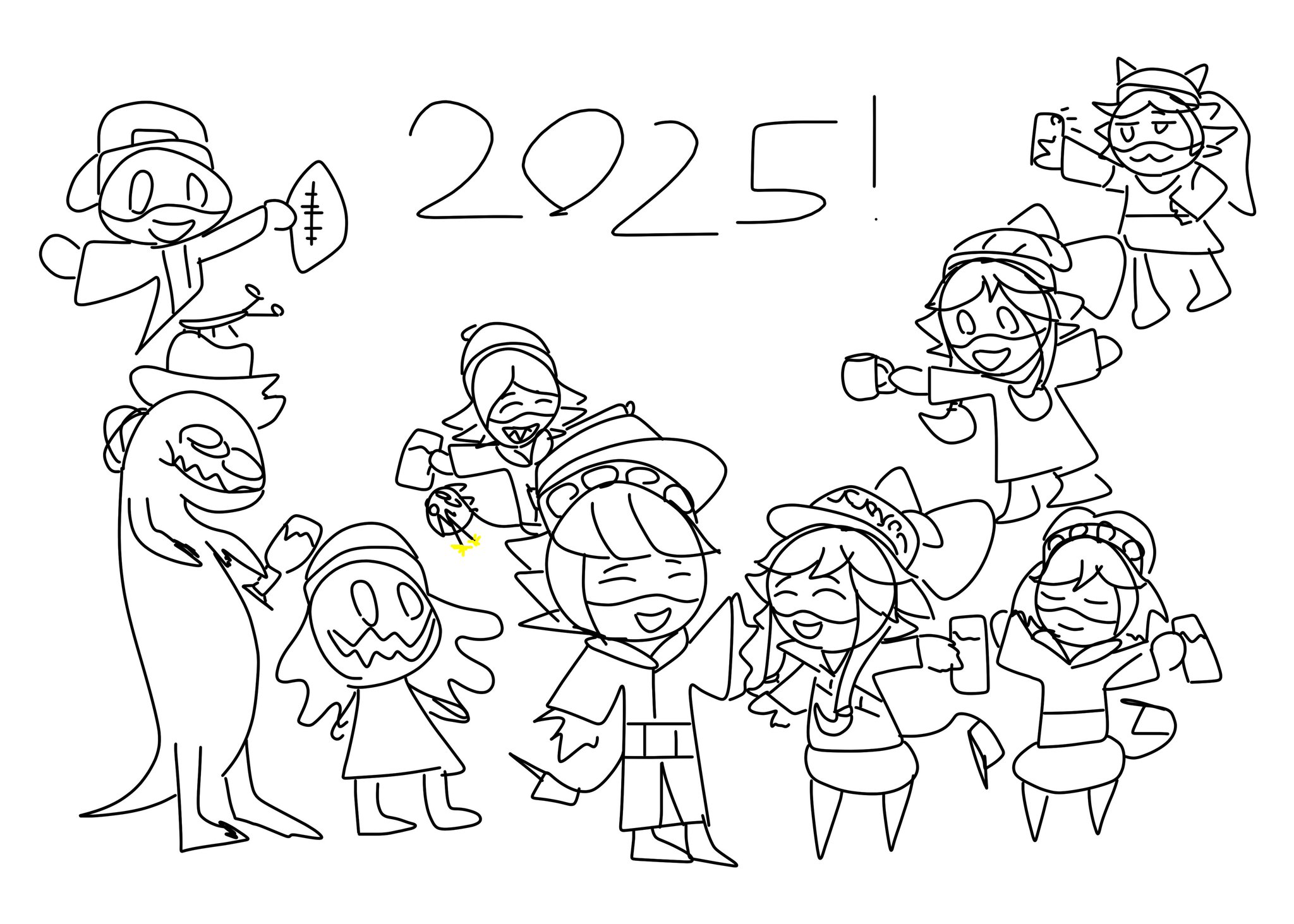 Started working on a new year's thing and am now feeling lazy so imma finish tomorrow There are four more characters I can fit in, so tell me which they should be (or else I'll make them all Anon and you wouldn't like that now, would you??)