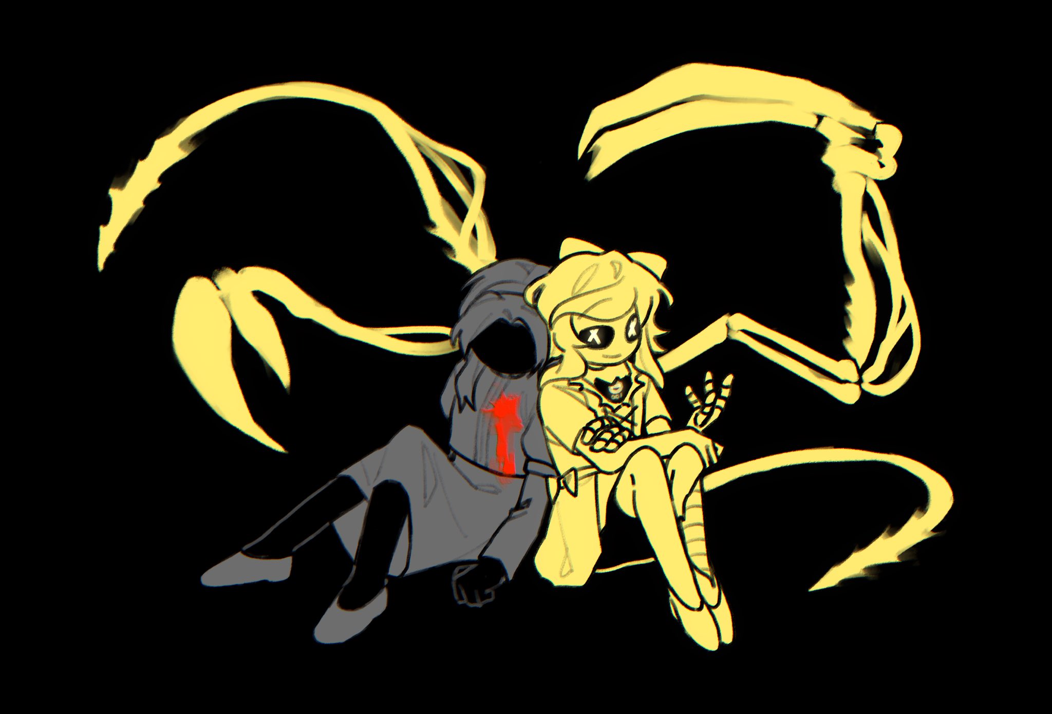 I remembered making a dumb crackship doodle between lord x and cyn a while back. And the idea of what their crackship child might looked like has plagued me for a while. So I've decided to drem them. Meet Abyzou
