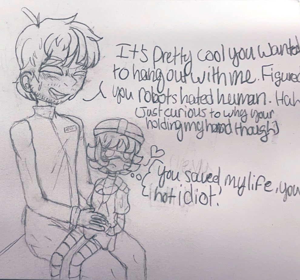 >>15653 After talking for a while with my brain, I have come up with this, there was the typical team of 3 disassembly drones sent to attack the outpost and destroy it. With time something similar with the main cast of MD happens, a WD gets to know them and eventually gains the trust of one, with time they are "friends" and decide to stop this stuff and instead use other sources of oil, but one of the 3 doesn't want to go with it but maintains silence enough time to gain trust, and as soon as he gets in he starts a massacre, the other male DD called Rael (who goes unnamed in the green but I wanted to use this name) kills him, and destroy the core, then with time he ends up with the WD that convince them to stop, the female DD called Rue has anger issues from the start, mentally unstable DD is a normal thing, but after not being able to kill for a while she is losing control but mostly maintains cool, but she ends up with a short fuze, she hits some times WDs when they get in her nerves but never with enough force to actually kill one. This time the WD that started this friendship started to talk with Rue, talking about she is becoming a problem and they need to see how to fix and she needs to stop being so aggressive, Rue then has a little leak in her memory but what she remembers that she hits the WD with a lot of strength, green start. That's what my brain tells me what happened, by the way, search for the meaning of the names of Rue and Rael.