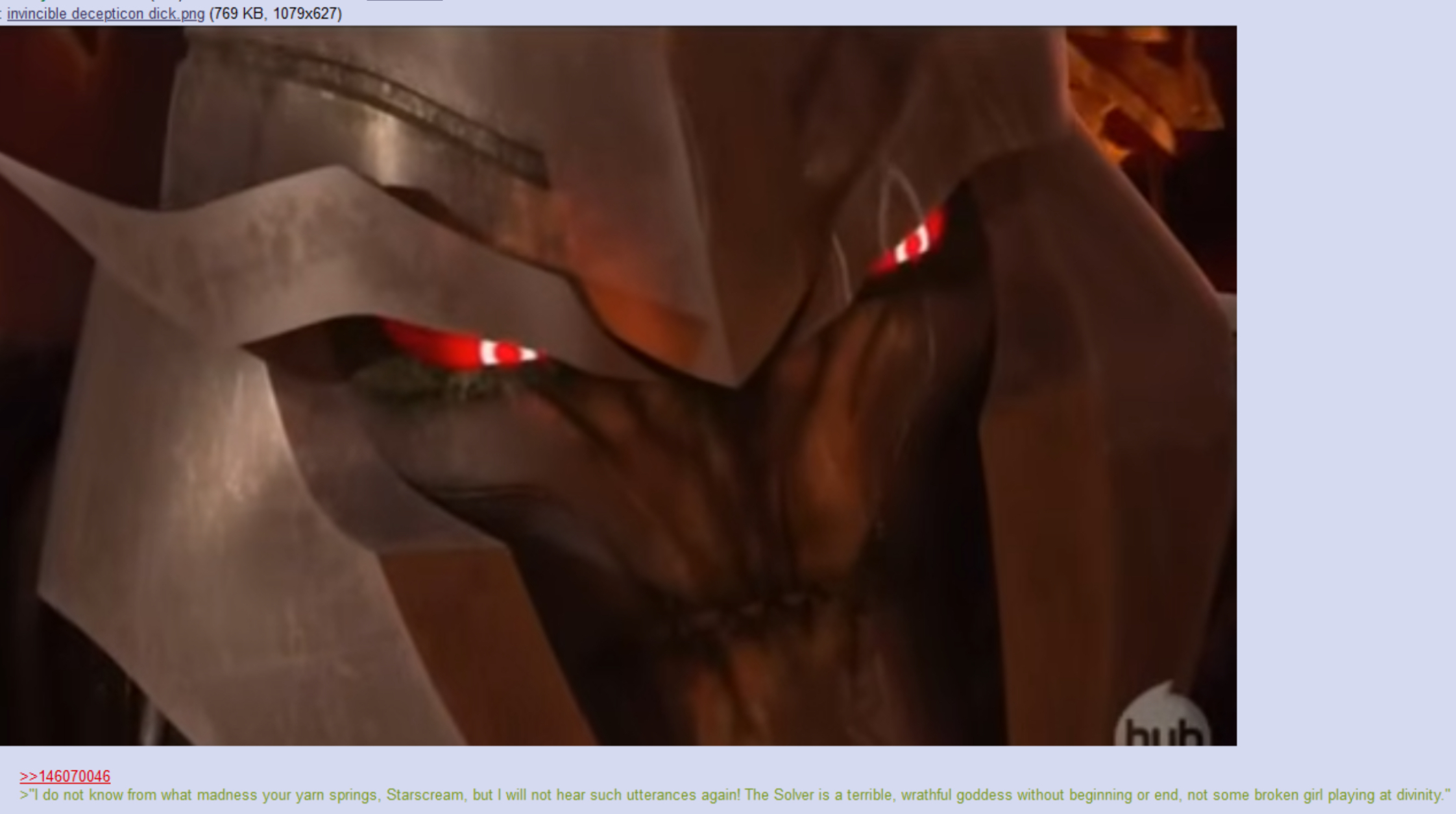 >the decepticons all love murder drones >Megatron is a lore officianado and flys off the handle when any of the other decepticons get the lore details wrong >Starscream continuously vexes him with his awful nonsensical crackpot theories that break both the established canon and fan made thread continuity(s) kek