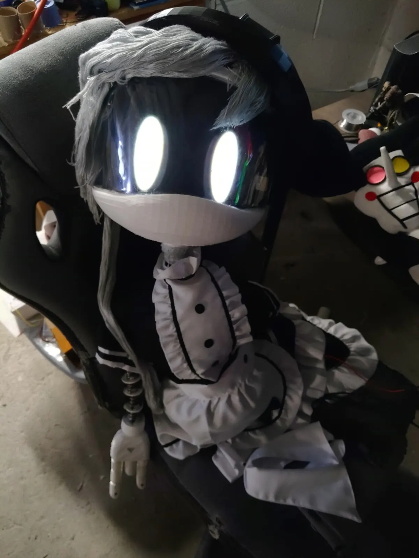 >youre just another old guy. you had a wife and kids, and youre almost at retirement. >one night though, while you were watching football and yelling at the opposing team. you get a phonecall >it's from your eldest son >out of all your children, you were alwys proud of your him, such a smart boy. Good grades, got him to college amd he majored in engineering. and has a high paying job, many fathers wish they could've had a son like that >you hear what he has to say >"hey dad, i've done it! ive found the love my life!" >those words hit you hard, in a good way! >Oh joy! Hes got himself a girlfriend! You akways knew this was gonna happen! >hopefully this leads to you getting grandkids! >"Really son! wow! I knew you had it in you!" >"thanks dad, actually we're coming over tonight!" >"right now!" >you hear your doorbell ring. >answer it and wouodnt you know it! >you give him a big old hug! >"gee thanks dad!" he says as a sits on the couch >"so, son. wheres that girlfriend of yours?" you ask him >"Oh shes on her way! shes a little slow." he answers >you sit there eagerly waiting. Just who is this young lass! >you hear footsteps. and....whirring? >your son perks up. >"Oh dad! here she comes! >you see her come in and..... >what the fuck? >is that a robot!? >not only that, a very short and adorable looking robot with long white hair, a visor with 2 glowing ovals, white metal skin, a black helmet with a black bow and a little black hoodie with little pants to boot! >she looks like a little kid! what the fuck!? where did he get this! >her movement was slow and awkward, a few steps in she trips and he comes in to help her up >he turns to face you "dad, meet my daughterwife! CYN!" >he turns to look at her "say hi to your grandpa father in law cyn!" >"..............hello"