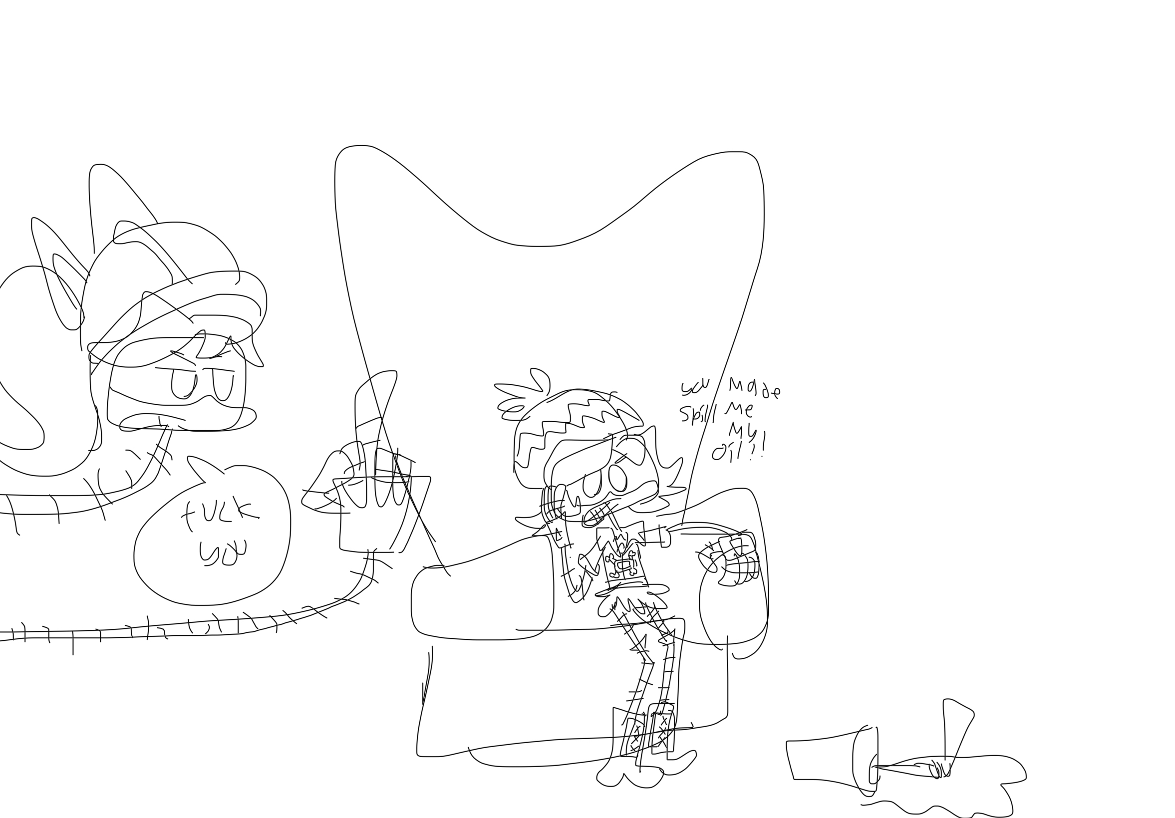>>155021 ive been enjoying your art for a few threads now, i like them alot. For some reason i struggle to do scribbles like that due to perfectionism or something, so i appreciate anyone who can draw like that.