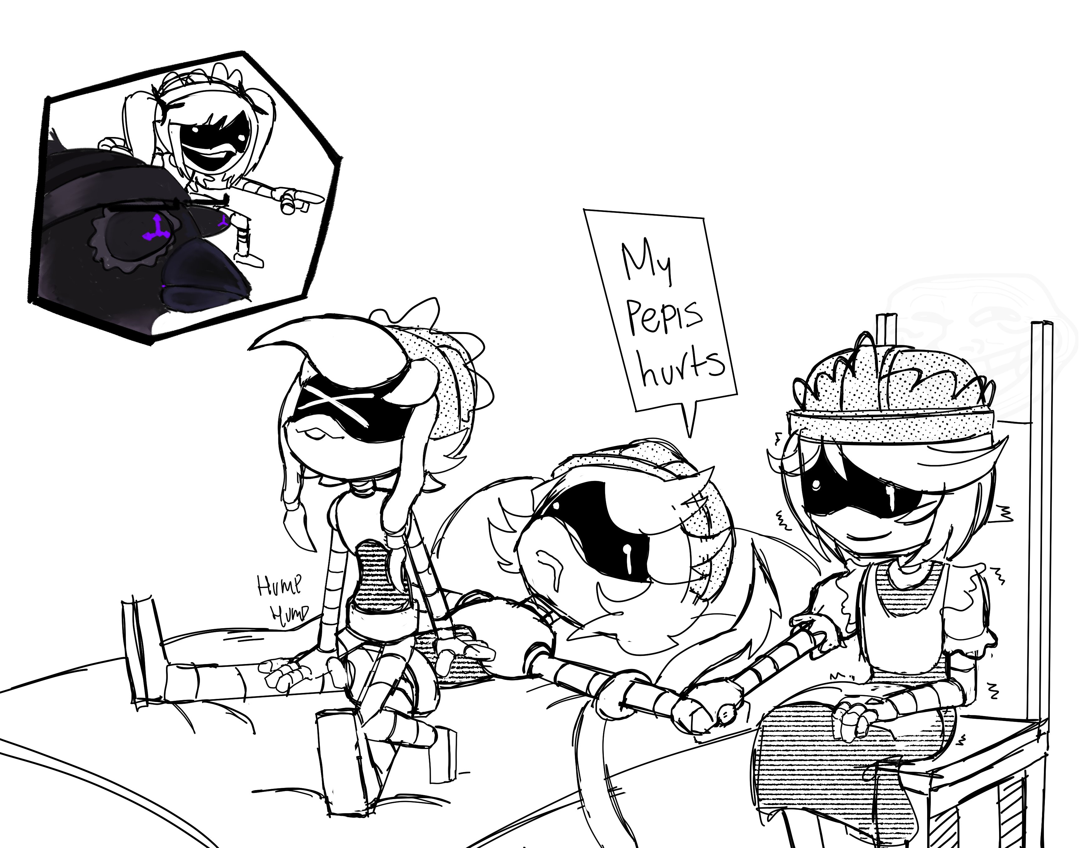 More of the Solverless timeline and the direct sequel to what I posted earlier this week >>160723. The joke/story here is loosely based on some theories/interpretations about Cyn being Uzi’s parallel. In this case, it is about how they are both convinced that the world is against them because people dislike them for completely legitimate reasons.