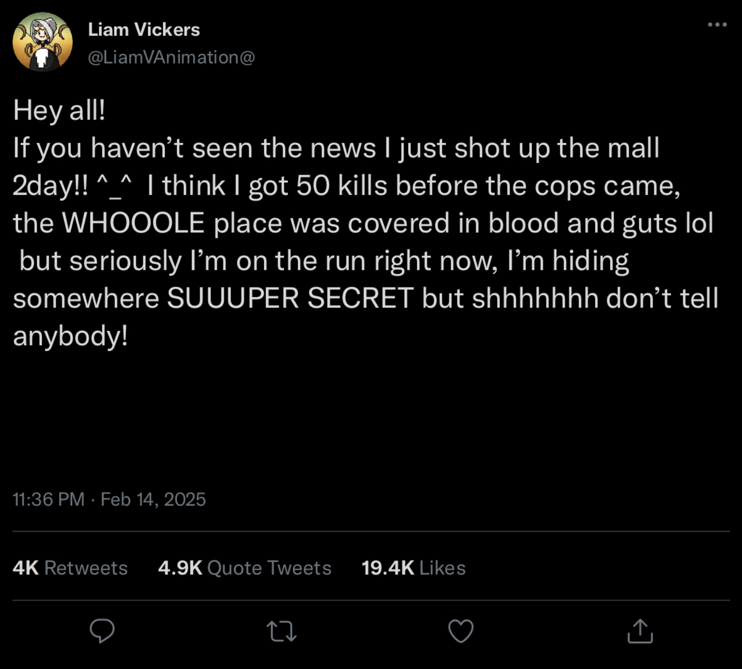 >>163518 I know, but it could have done with a bit less. Fiction should be an escape from these very aspects of real life. Liam can easily kill those he doesn't give a shit about, he can claim that if he kills two of Cyn, Uzi, N or V for good. If he is consistent then their fates should be as chaotic as the real world, that makes more grounded horror. No plot armour saving anyone, MD doesn't have that, N or Uzi were never in danger and I think most didn't buy into anything happening to them.