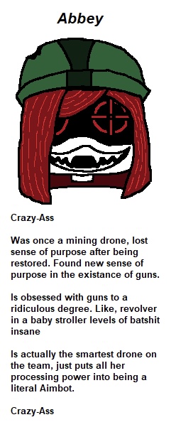 OC idea I had while eating ice cream: >steph, your trusty handygal! >ready to fix anything you need! >appliances to cars to computers to even other drones! >shes kind of an inventor herself! >her home is filled with doohickeys and doodads! >she has no friends! >absolutely no friends! >really likes to pick things apart to see how they work! >that includes her fellow worker drones! >she has been to jail more than once! >it’s ok! Her lawyer says so! >she gives free surgery! No cash! no credit card! No PHD No doctorate! no license at all! >trust her, she’s got this! >she does not dabble in black market weaponry and organs trafficking! >that’s what her lawyer said! >so call her now for any repairment needs!