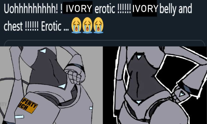 >Be the usual cleaner Drone at Sentinel base >You’ve been living here for basically your whole life, but you still find it odd they don’t ask much of you beyond some basic window cleaning once every week or so. >You wonder, as you sit in your little charger box, what your true purpose is. Surely they wouldn’t waste money on purchasing a Drone like you simply to use you as a window washer, no? >Well, today you’re about to find out the true reason you’re here. >You’re just about to resume your work only to find your path blocked by… Ivory. The big Sentinel >She seems to be interested in you >“Some of us get needy when our boyfriends aren’t around. Get to it.” >You have no idea what she means but you feel scared anyways