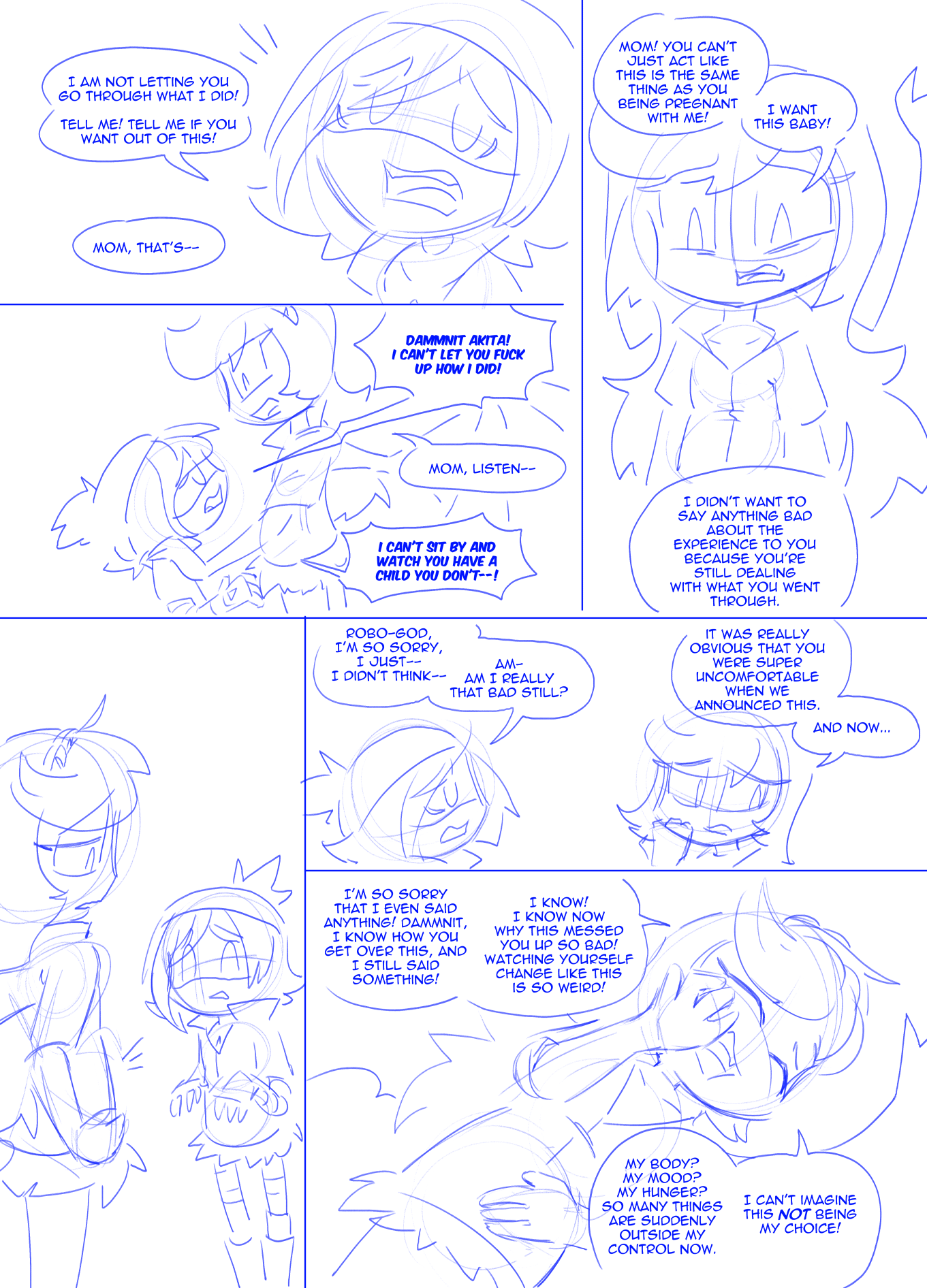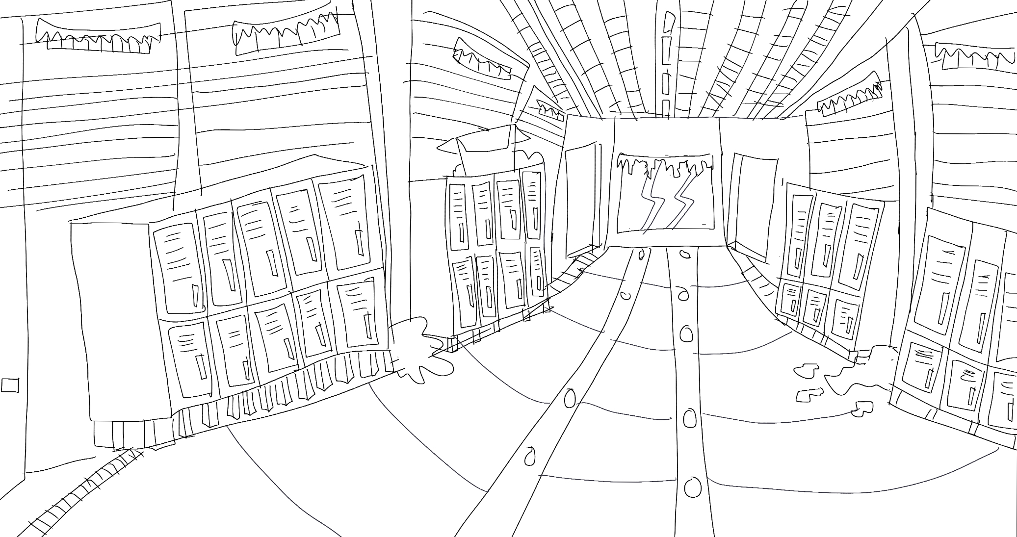 >*CREEEAK* >The sound of the door creaking wakes you up and you open your eyes. It always does this when it moves which is why you keep it…locked. That can only happen from the inside. >You push yourself up and snap your head towards the door and for a brief second you see a shadow before it disappears. >You jump off the bottom bunk bed and climb up the ladder to check on Chiappa. >She’s gone. Her blanket is all curled on the bottom end. >Your heart skips a beat as you climb down the ladder. Where is she? Why is she gone? >You can hear panting from down the hallway outside which is also the only light source since the lamp in your room is turned off. What the hell is this? >You notice a trail of saliva leading towards the door and down the hallway. >After changing out of your pajamas, you follow the train of saliva. Worry and confusion have stricken your heart. What’s going on with her? Is she hurt? >It leads outside your home and towards the hallways of the bunker. Without thinking, you follow the train outside. >There’s not a single soul in the hallways as you follow the trail. Why would Chiappa leave home? >The trail leads to another residential unit with its front door open. You look at the front door’s number plate and…this is where Rial, that drone that’s been bullying Chiappa, lives. Did he kidnap your sister?! >You enter the unit not caring that this is technically breaking and entering which is illegal. You swear if he’s made just a small dent on her… >As you move quietly through the hallway of the unit, following the trail, you can faintly hear what sounds like munching like you eating hard candy or Chiappa eating batteries. >The trail leads to another open door and you walk over to it to see what’s inside. The light isn’t that bright to illuminate the entire room but it just enough to see Chiappa kneeling over Rial who’s laying on the floor.