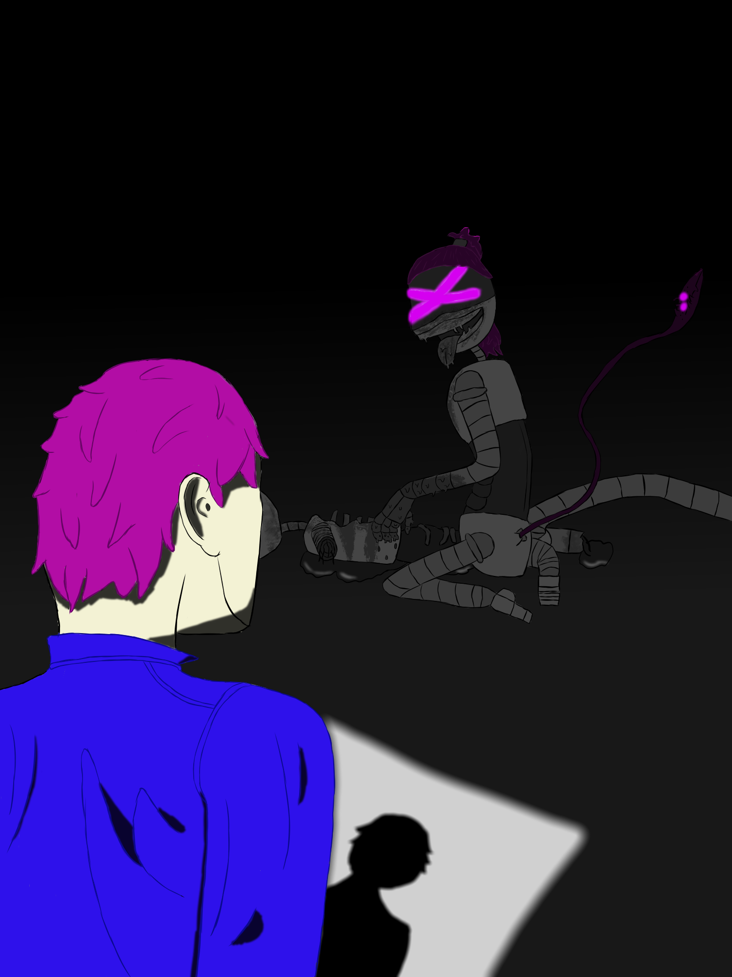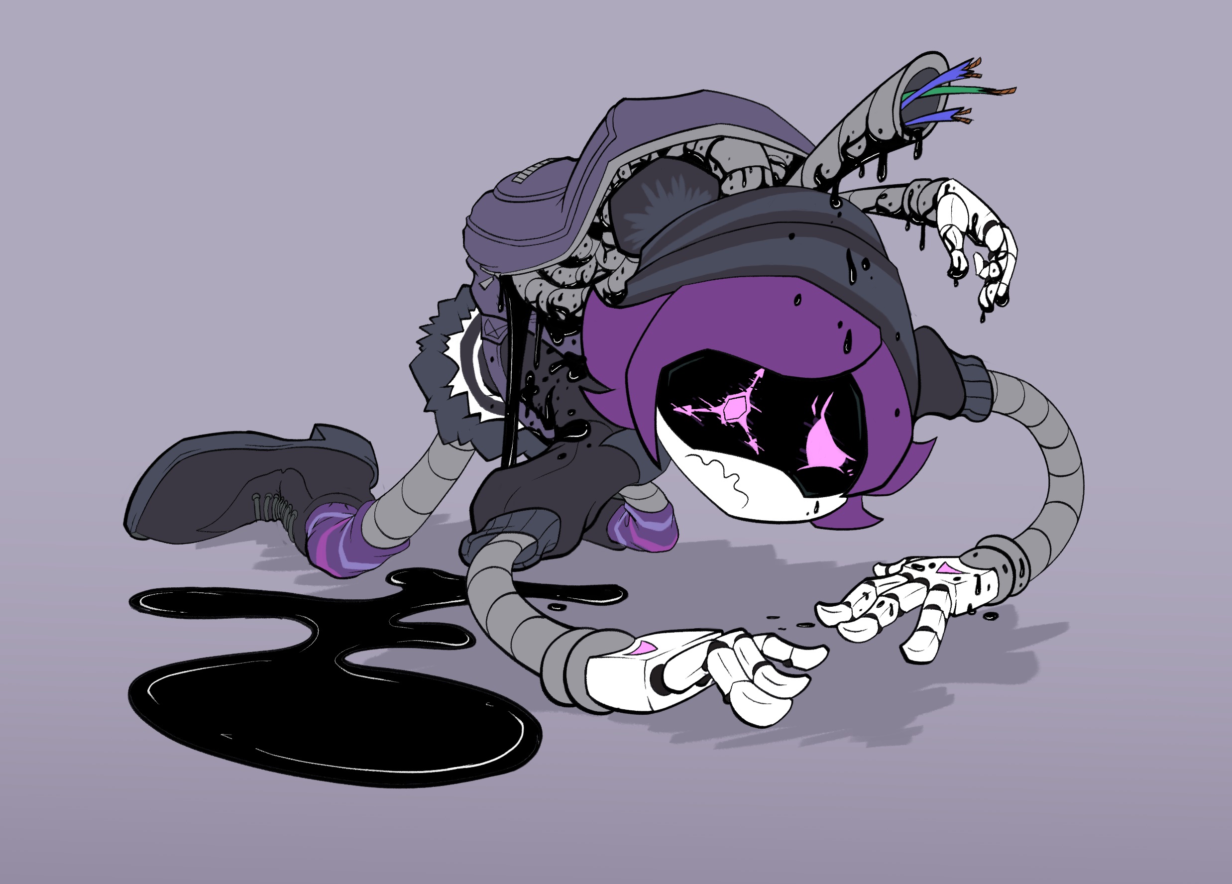 skinning thad of his Chassis + arm and leg coverings, slowly peeling back cables and internal shelling. till you get to the base mechanisms keeping enough plugged in for him to live, while shoving a hand into his core wires and tangling them into a big knot
