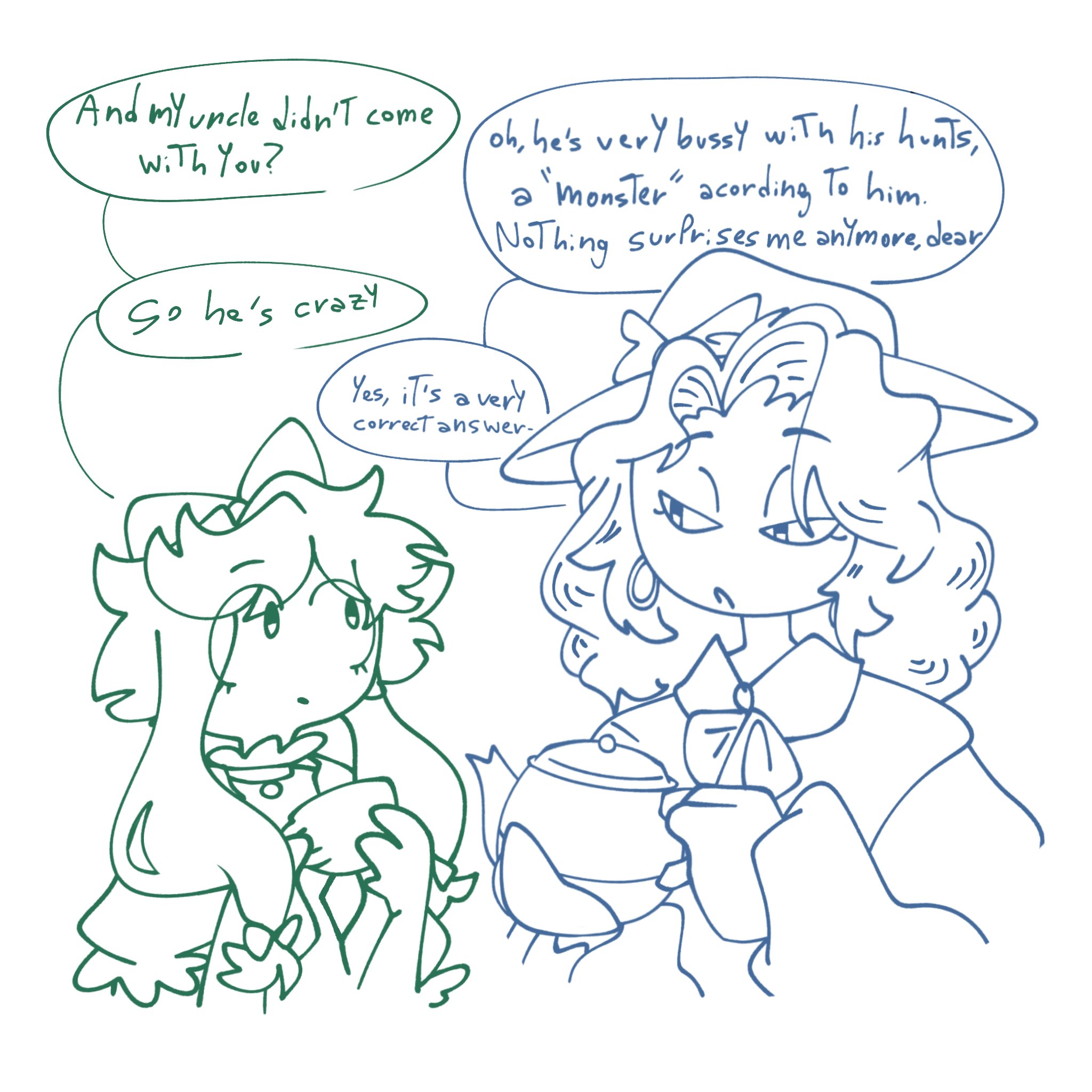 >A skeleton—Tessa’s skeleton—sits at a table surrounded by reassembled drone corpses, all posed as if they’re having tea. The scene is bizarrely well-organized, with mismatched cups and little plates of what looks like… circuit boards? Tessa Skeleton (calmly holding a teacup): "Don’t judge me. I was never raised properly. Let me cope." N and Uzi stare in stunned silence. N: Whispers "So… do we join, or…?" Uzi: Pulling N back "Nope. Nope. We turn around and pretend we never saw this." Tessa skeleton takes a delicate sip of tea as they slowly back out of the room and shut the door. THE END.