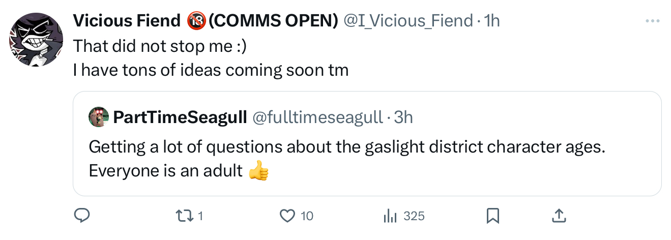 >>185143 So basically nothing good has happened in these threads since I've been gone except for this new suggestion. Well fuck, guess I'm going to be writefagging for the Gaslight District when that comes out now.