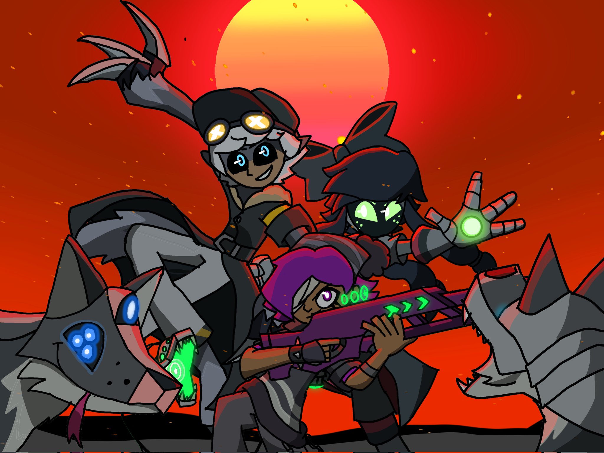 I know Solver Tessa has two pairs of arms but it would have been too cluttered otherwise. Also, I went with green because there was no colored reference and because of the whole praying mantis thing. Also, her overall stance and appearance should tell you why I prefer to use an art style that does not include arms, or individual legs, or mouths, or any kind of detail really.