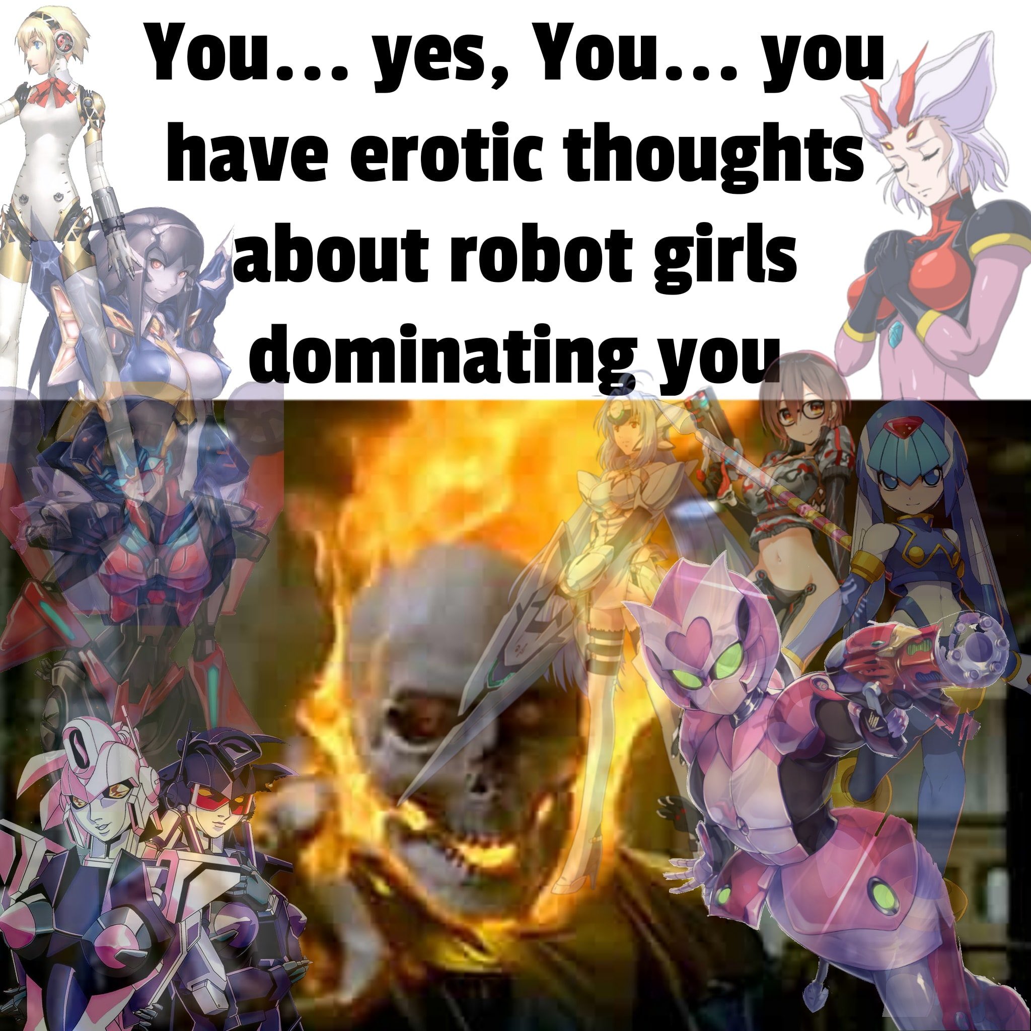 >>19147 >all DD OCs Unless they can show that they can act civil and not murder them all in their sleep, they'd all be treated with maximum hostility and probably have Haruka called on them >Sentinel Drones Similar to DDs, even if they don't mean harm, their image alone would trigger generational trauma, that and their bootlooping flashes would remind everyone of Banshees and other Sentinels, which are as hated as DDs >Worker Drones I can't really think of any Worker Drone OC they'd show hostility towards, if they don't act like dumb foreigners that only know of Japan from anime, they would be welcomed.