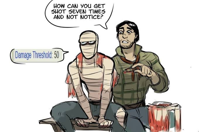 >N had a piece of leather between his teeth, ready for this >"Just stay still" She started the little operation on N's leg, trying to do it slow enough to cause minimal damage but fast enough to finish fast >They were out of morphine, and alcohol, so this time N would feel every second >He tried his best not to scream, bitting the leather strongly, he could feel like he was going to bite right through the leather >It just lasted less than a minute thanks to Tessa but the pain was enormous, and when it was done N relaxed his body >He spat the leather out of his mouth to say something "Thank you, I don't know what I could do without you" Tessa laughed a little "Not a lot it seems" N laughed at her joke >Tessa was about to put everything back in place, but then N grabbed her hand "Really, I don't know what I could do without you" >He slowly stood up and hugged her "Thanks for being here" Tessa's visor was filled with blush, but she hugged back >"I will always be here" They hugged for a few seconds >Before N said something "Let's play dog trivia" "Mhh... Okay!"