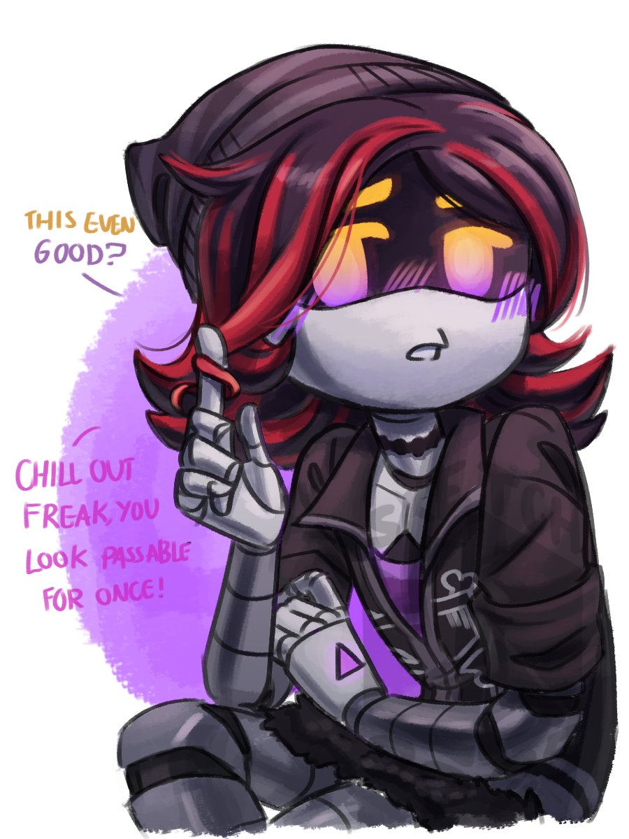 >"I concur." >A twitch in the optics and tick marks bursting onto her screen signalled the breaking point. >She could already feel several strands breaking loose from her neatly kempt hair. >"Out. *Now*. Or I'll tell everyone it was you who screwed up the office nursery, S. And don't think I've forgotten about your secret plush collection, M." >Some more damnable moments of quiet went by with the tapping of her peg legs, hands on hips, before her victims emerged. >And when they did, the fashionista let out a squee of satsifaction. >In retrospect, the attire was cliche for cosplay. Not that it mattered during her frantic darting about and taking photos.