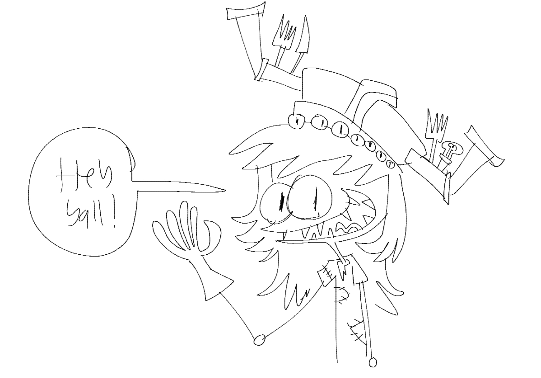 So, one day I came across here because I got interested in this show and decided to take a peek here. You can thank deathtempler and his irl drone project for that. I didn’t draw very well back then so all of it looked really shitty. I posted a casual drawing of Uzi and people seemed to like it, though I think they were just being nice. One time grim showed up with a drawing, I knew grim before but this was the first time in which we actually talked. I told him how his art made me jealous because it’s very good but also amateurish in some aspects. Funnily enough he actually responded to me >>150639 And I responded back telling him what he tout of my art. And to my surprise he also did! >>150644 He liked it! He even explained why >>150774 Everyone got annoyed quick because. Was always rushing art to get more replies. I once tried to force out this oc called DH, I made all these greentexts to simulate him being popular and everyone saw through that. Really got on peoples nerves. And then I showed up to the drawpile, this was my first time and I started fucking things up. I drew on other people’s art for laughs because I watched streams where friends did that even though I wasn’t friends with anyone And became of that, they banned me.