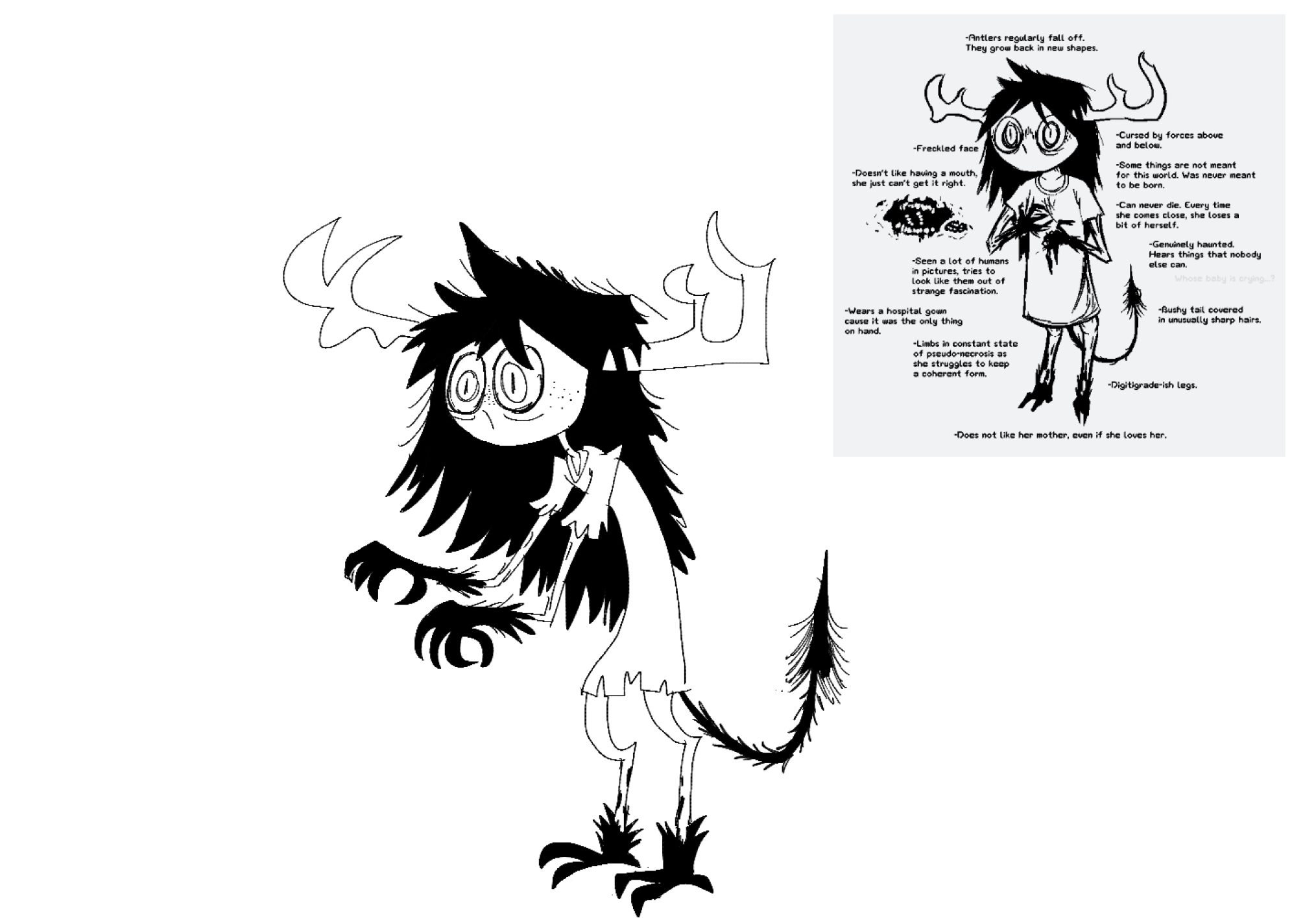Fuck it. Drew a hideous Alice-spawned Solver Sapien because the idea was too good and I didn't want fucking SCRIBBLES to be the only one to approach it. Couldn't come up with a name for her, so I'm unloading that burden unto the universal will of the thread. Two things are for certain though: >1. She gets into situations. >2. She suffers as a result. She may be living proof that a kind god doesn't exist. Pray for her, as nobody else will.