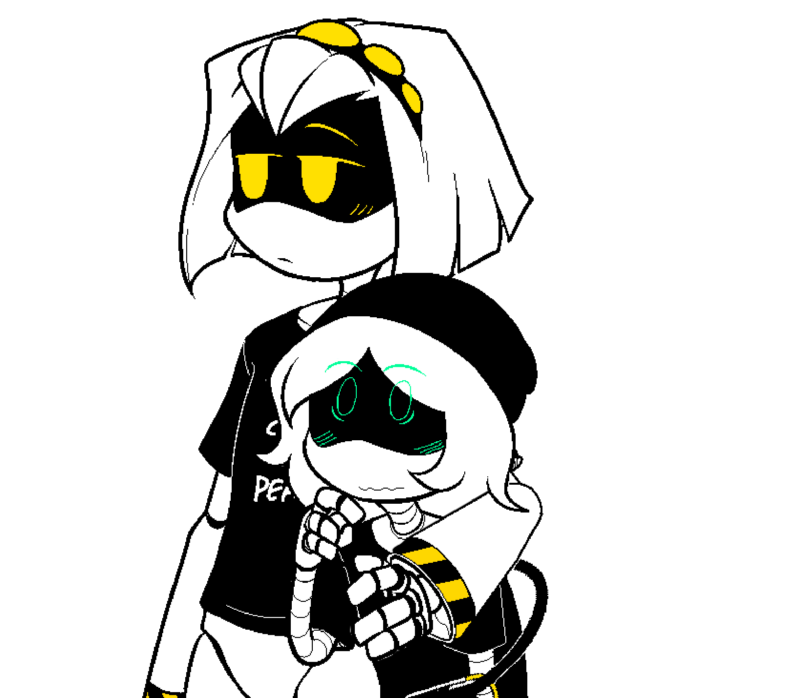 >>216987 Uzi (Solverpede using her original body as a cute puppet) and Doll (ghost, specifically the original plan for her ghost design where she looks like her corpse, see picrel and Merc's pics for reference) taking solace in each other's company, in the company of someone else who knows what this is like.