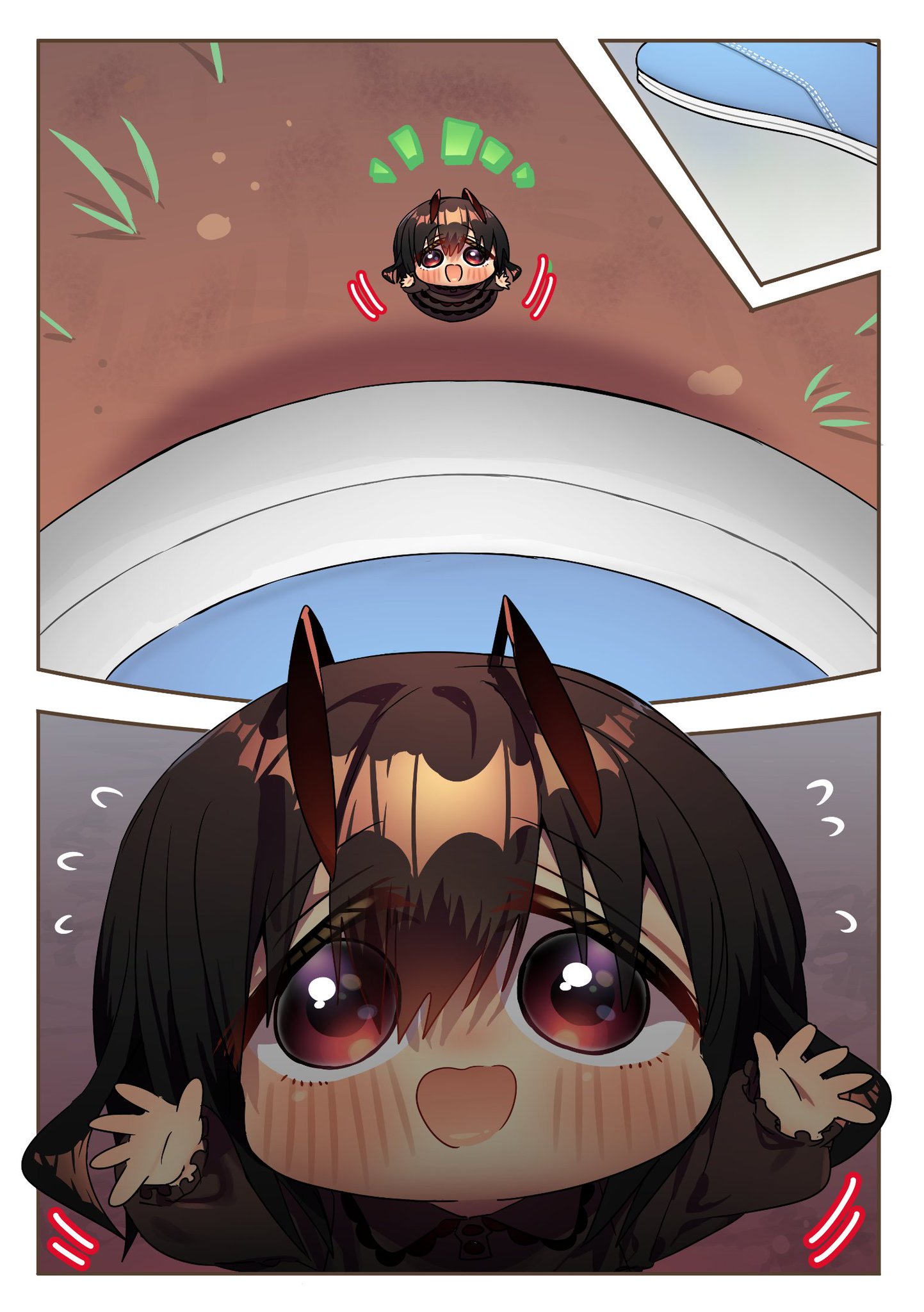>Miles away Anon clings to SD-Q's leg, much to her disappointment as she continues to fly away from the scene >When suddenly a large blue glow begins to shine from behind them >Scared shitless SD-Q attempts in vain to fly faster, but it's too late! The massive explosion of energy sends to the pair into a death spiral, crashing somewhere unknown