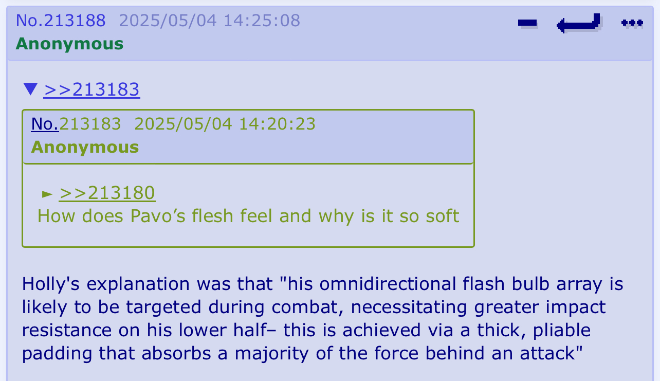 We've reached the weird OC threshold anyway. You can only get into these threads now if you're prepared to discuss weird non-canon inventions. Like that old general I used to browse that became mostly about an OC.