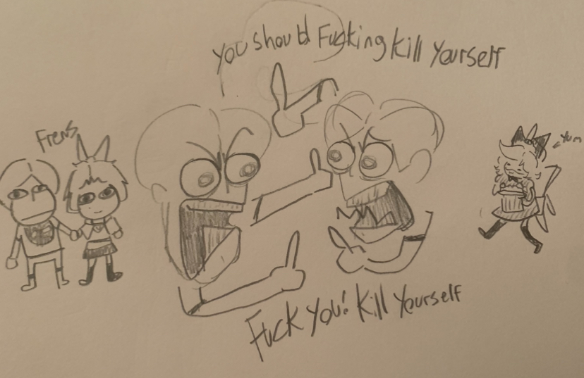 >>22303 Isn't it kinda fucked up how the OC and the creator share the same name/nickname so therefore any pain we wish upon the creator (Which is a lot and justifiably so) is also inflicted upon poor Droneanon (The character)