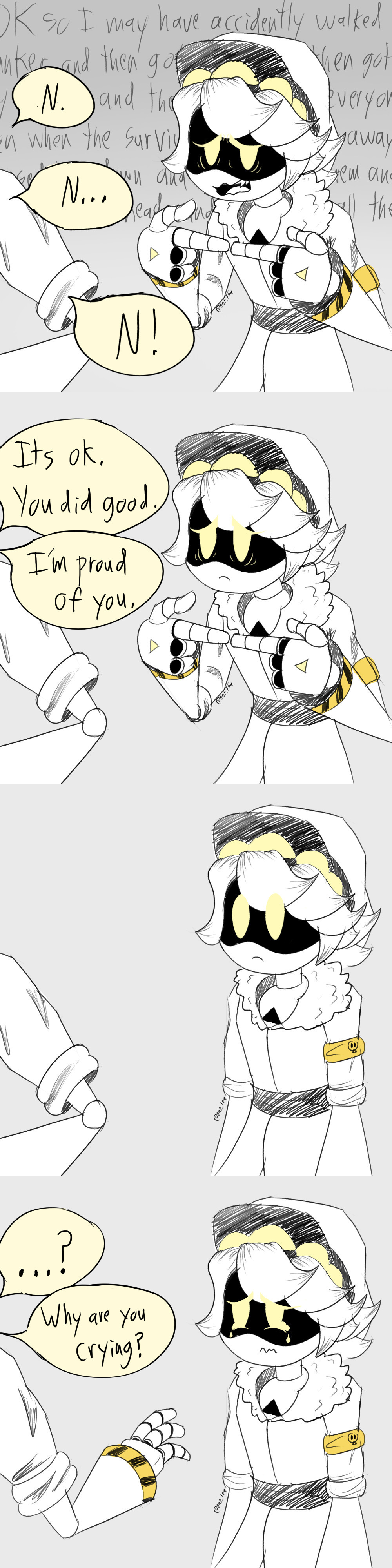 Between the brief reminder he's a vampire, the dispatching of the watchmen without remorse or hesitation, the apparent significance of his evil glare towards Khan, my almost certainty that Nori still being alive was something Liam came up with after realizing he only had the attention span for one season so at the time she was going to to be dead for real, and the hints even in the final product of an "N killed Uzi's mom and is hoping she never finds out it was him" subplot, I feel like N was originally going to be a darker character before the post-episode 1 rewritr. Not like his personality would change any-suddenly looking extremely guilty when Doll reminds Uzi the disassembly drones killed her mom too-but still, a darker character.